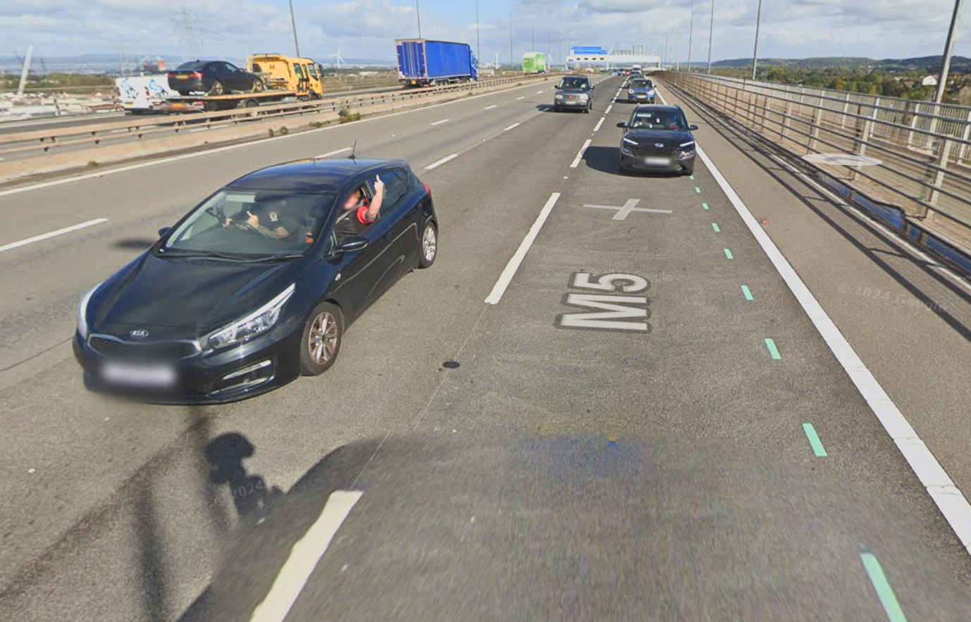 Two years ago the crazy basthards built this cycle lane on lane 2 of the North bound M5 marking the lane with green paint