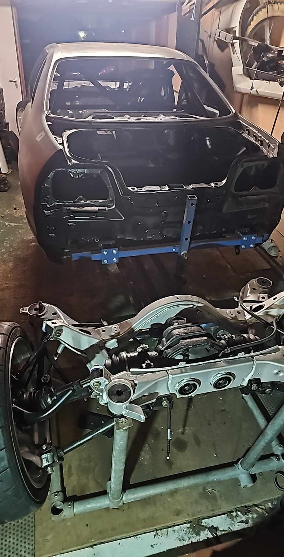 With all the bits off the car, I set about putting the shell on a turnover stand for ease of access for each stage of the project, including welding, blasting, caging and respraying. I'd thoroughly recommend getting in touch with Ade Foreman (of Ade Foreman Light Engineering) if you are in the market for a turnover stand, and the active Facebook community is a splendid resource.