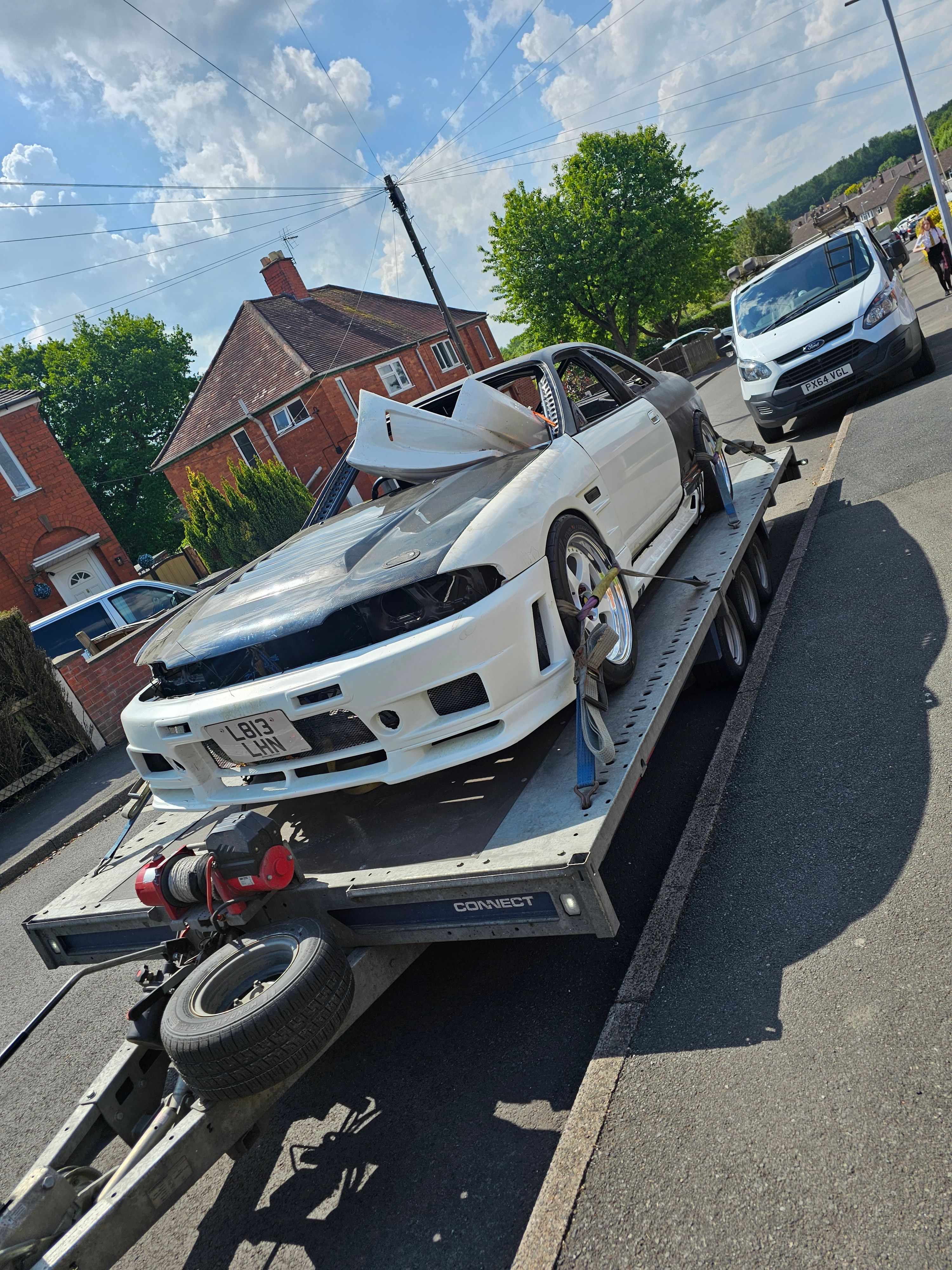 Looking like a real car again it was time to get the car to a professional! JM Details were identified as a bodyshop who would like a large JDM fibreglass project, and inspired by the reviews I could find, it was booked in and transported.