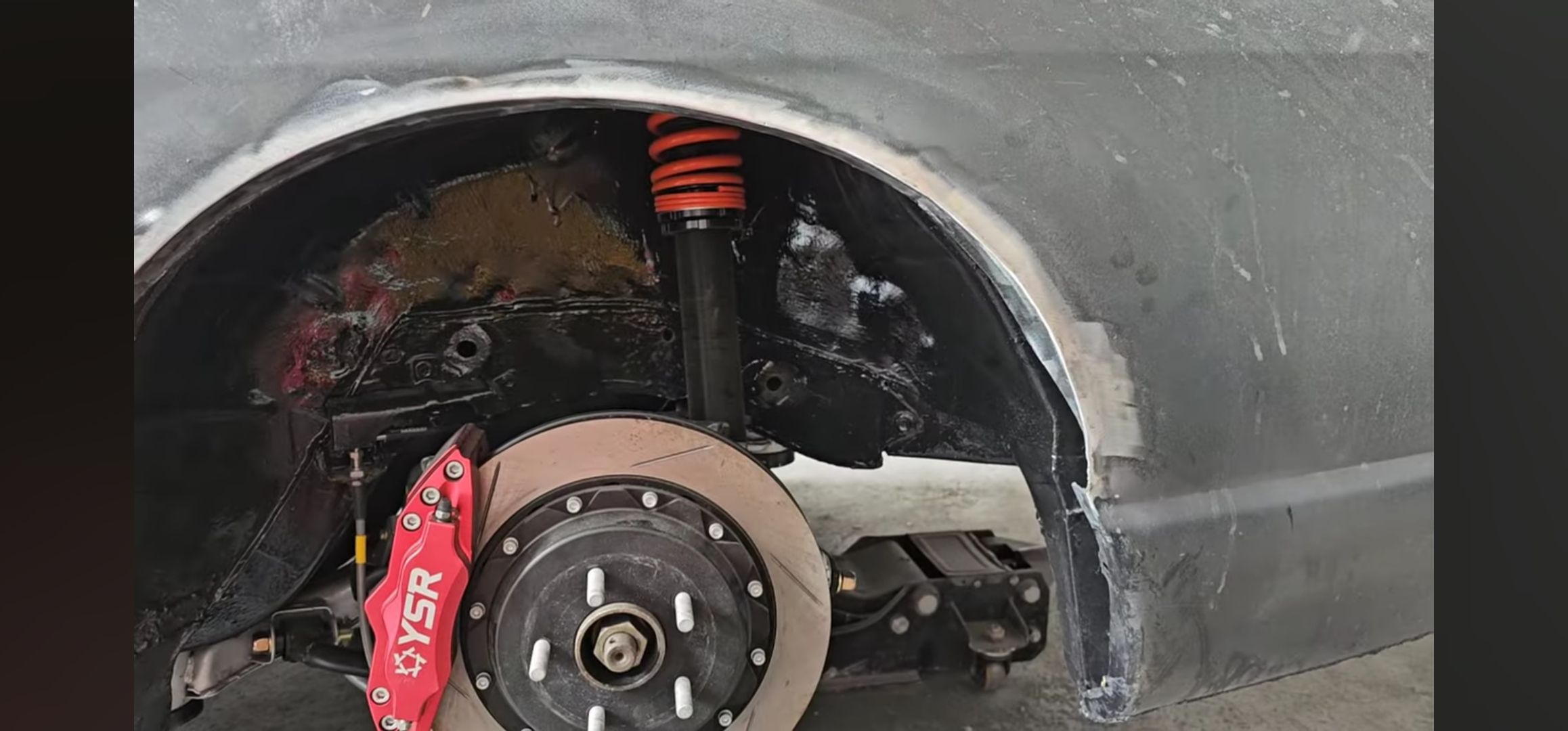 Of course to allow clearance for the wider wheels the metal arches had to be cut back and tied into the inner skin.