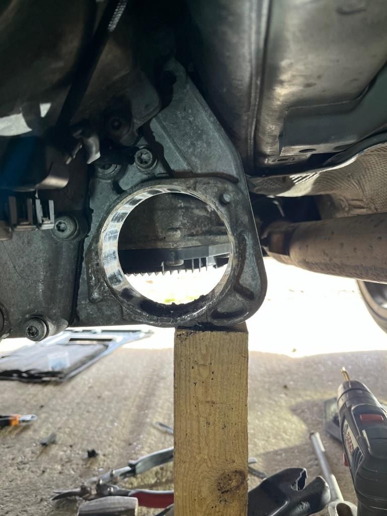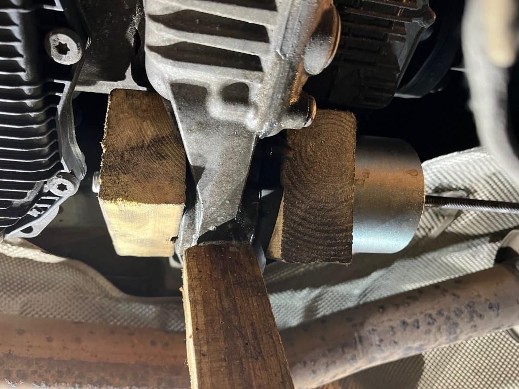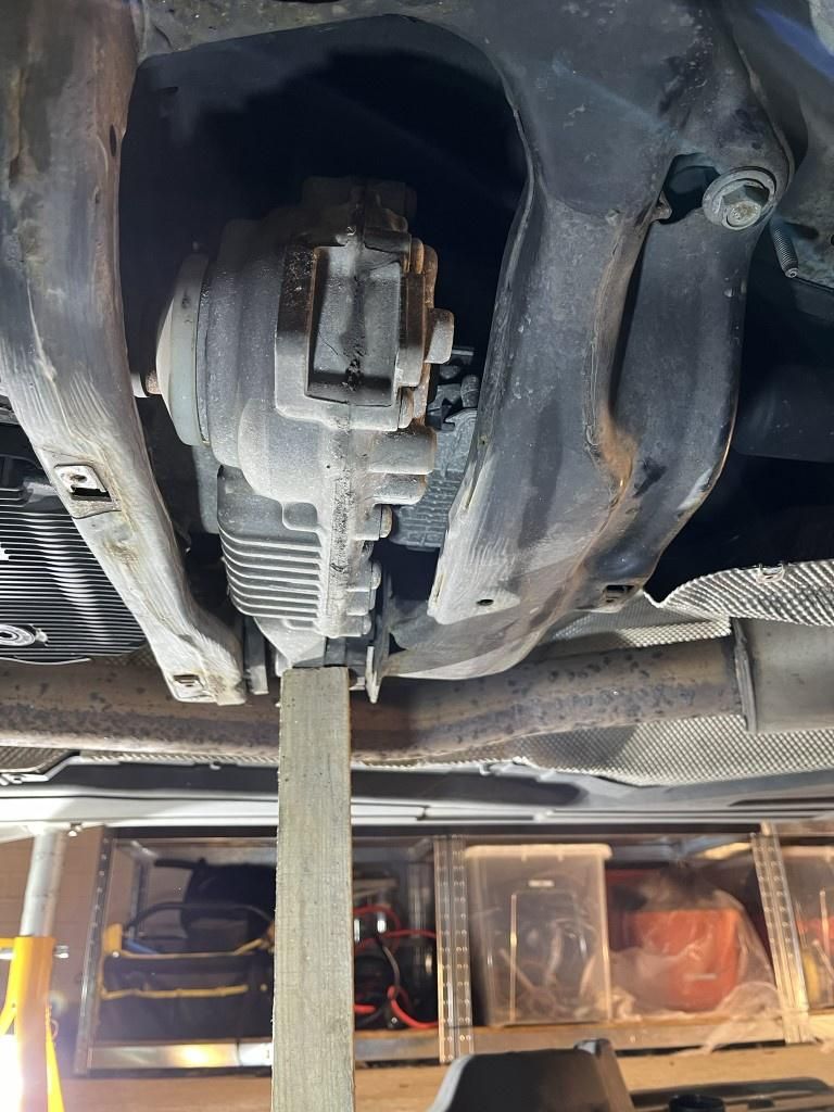 So, transfer case propped with a bit of wood