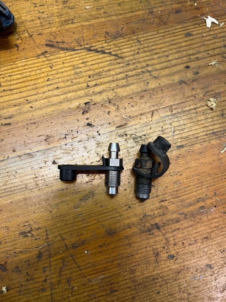 While I had the car jacked up, I thought it'd be a good idea to replace the brake fluid and all the bleed nipples