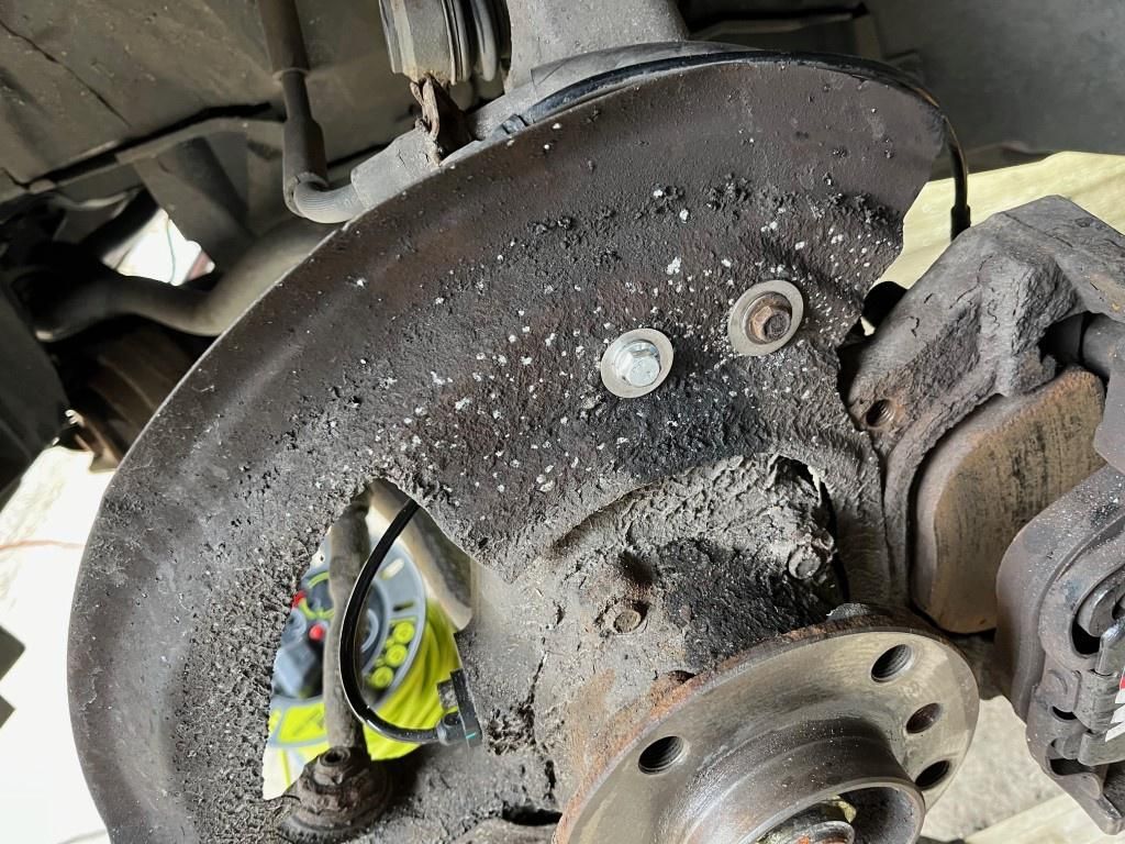While working on the car I also noticed both disc backplates were loose - some penny washers later and secured