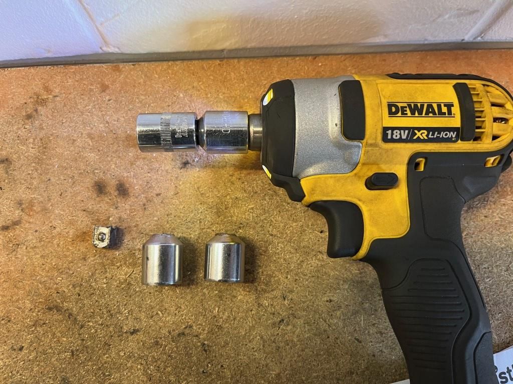 Getting to the backplates required removing the caliper carriers, which were way overtightened. I was using a 3/8" adaptor for the socket and snapped two before eventually getting it undone with a 3/8" breaker bar and a trolley jack to get it started. Unfortunately found I had a 1/2" (so no adaptor required) when I went to buy one afterwards...
