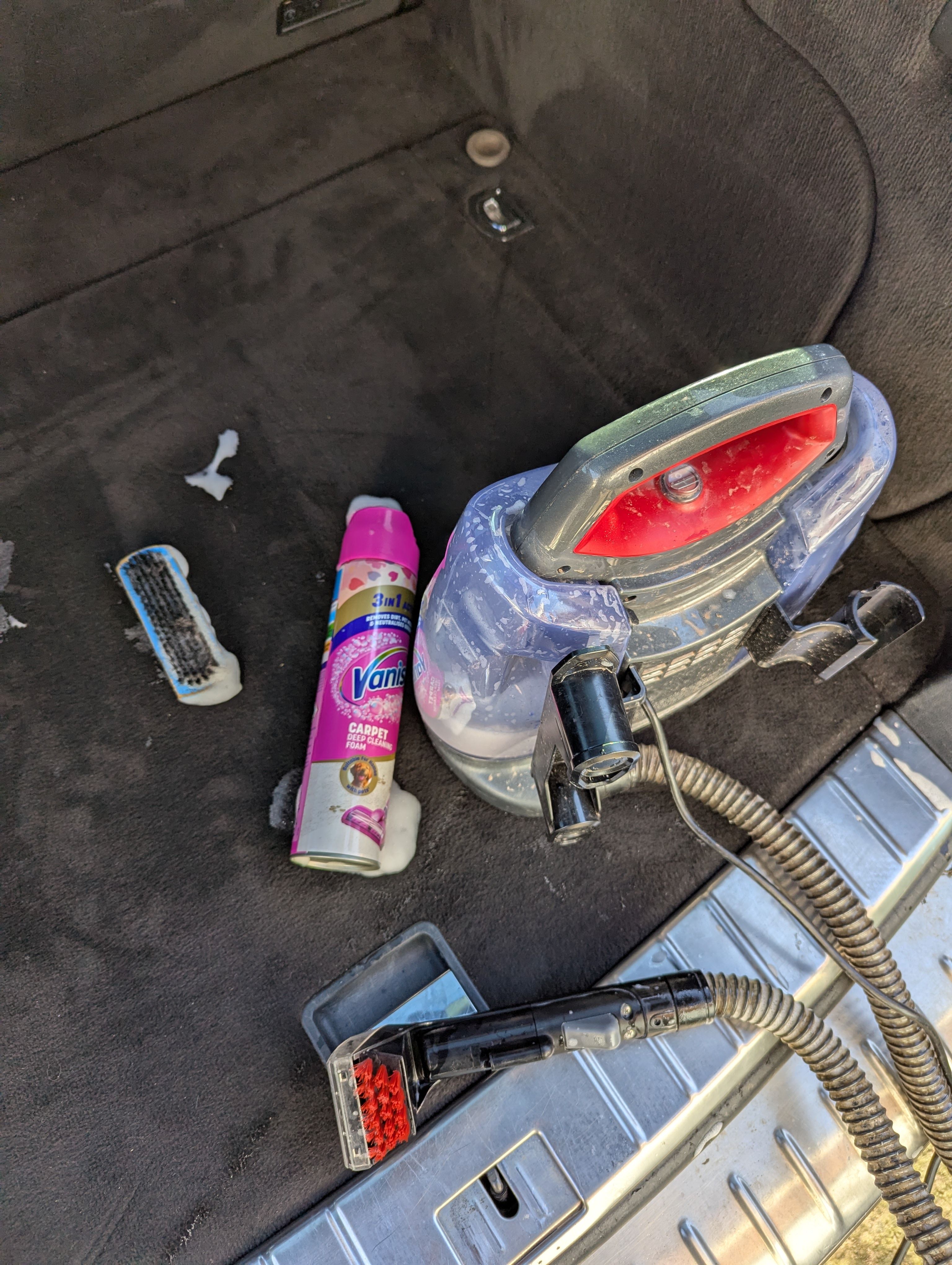 It was quite dirty, and was clearly used as dog transportation. I set to work giving it a proper clean with the wet vac and scrubbing all of the interior surfaces (with a helper). Over all it turned out quite presentable, plus the panoramic roof works!