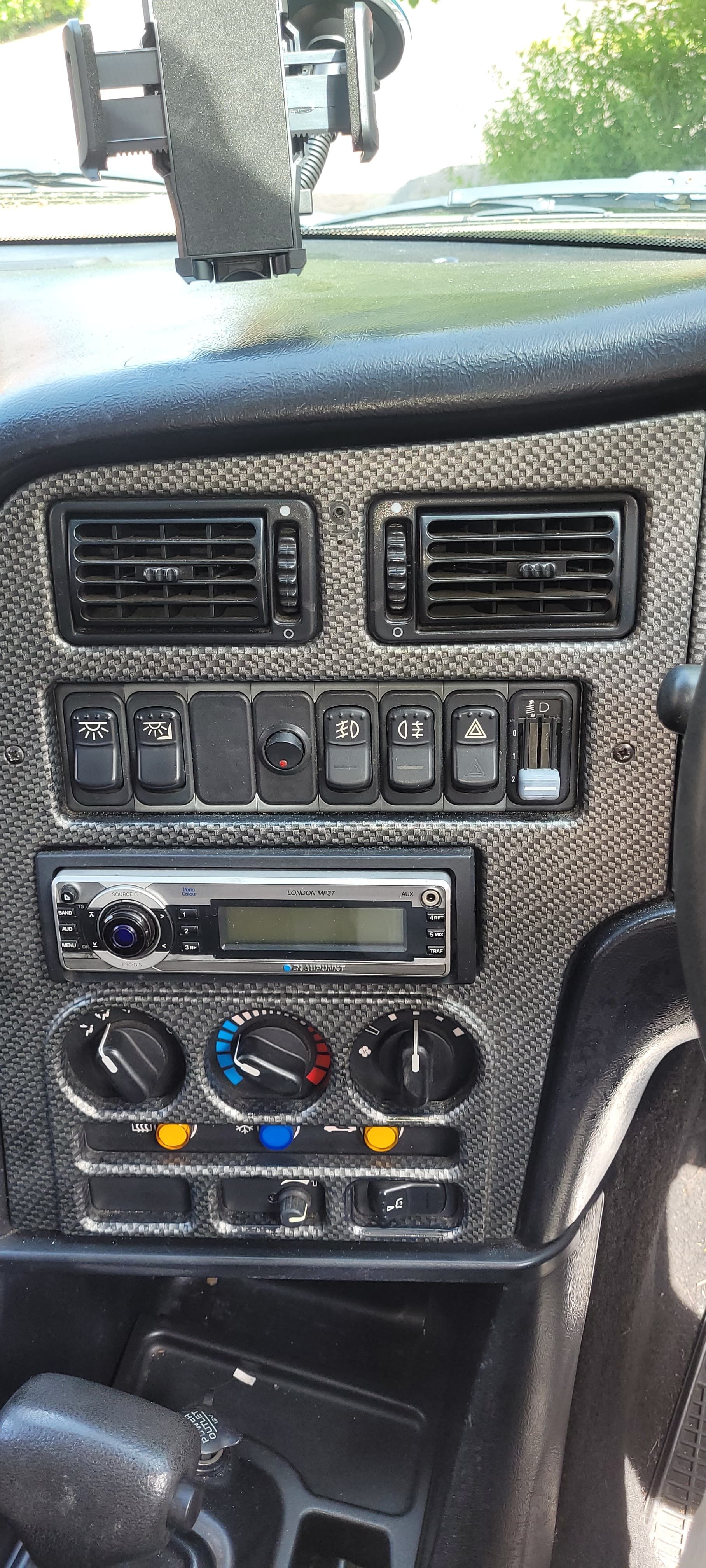 For fans of dashboard buttons, it doesn't get much better than this. I had flirting with the idea of replacing the stereo with one of those fold out android auto single din head units, but a £6.99 phone clamp from Halfords is doing the trick.