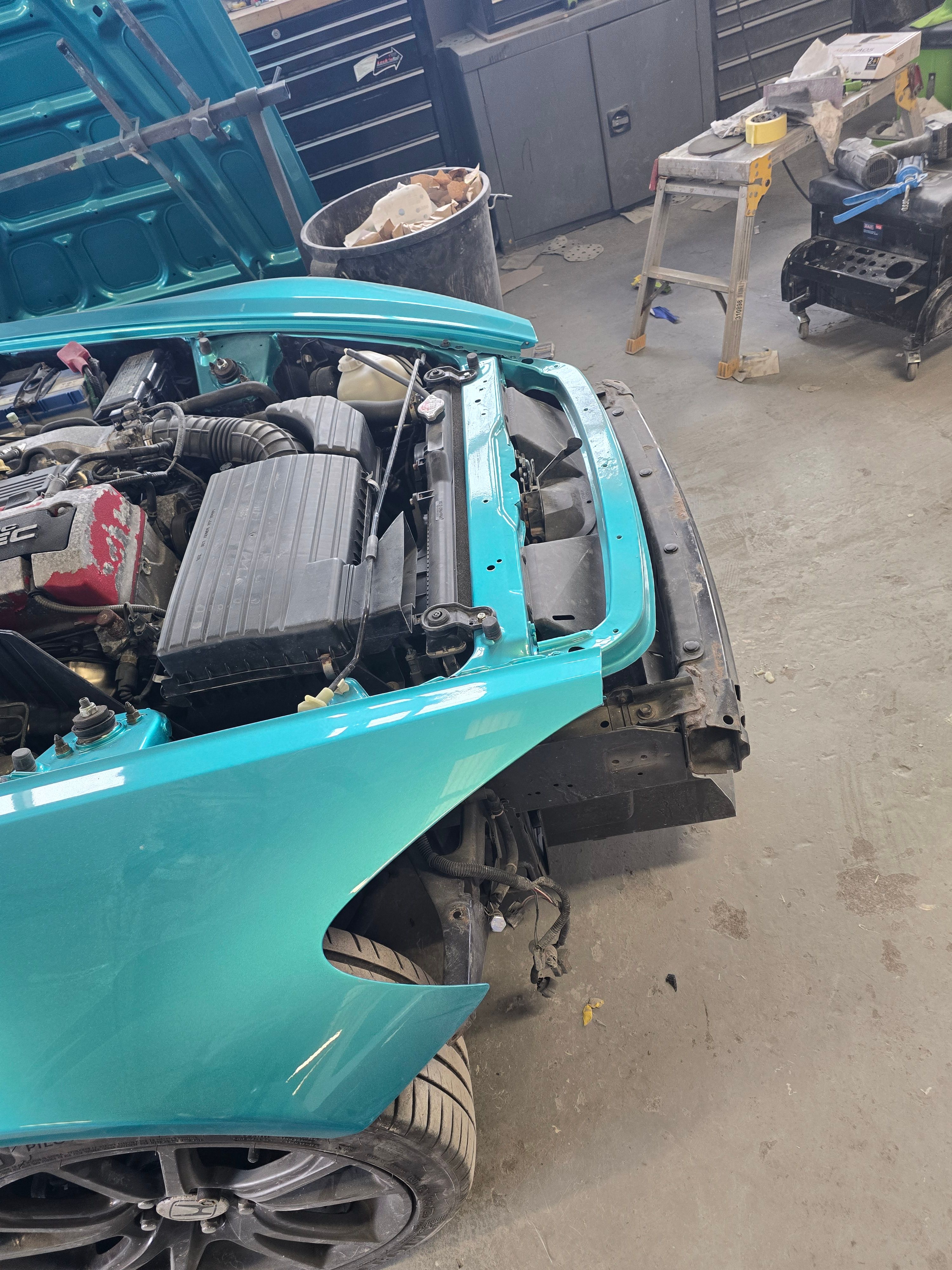You must be reading my mind, only subtly though. I really like the seats actually and like a oem ish look, plus there are no pretty buckets that fit in these. So intend to go for a nice alcantara/leather with teal stitch when the time comes, but that could be a year or so down the line, only once I finish in the engine bay Looking forward to seeing the bay painted to match...are you going to look at a re-trim once thats all done?