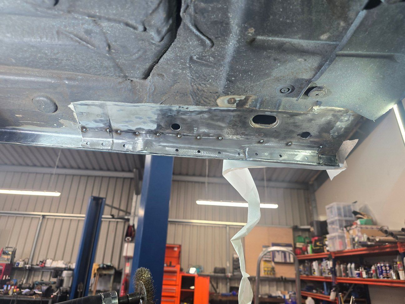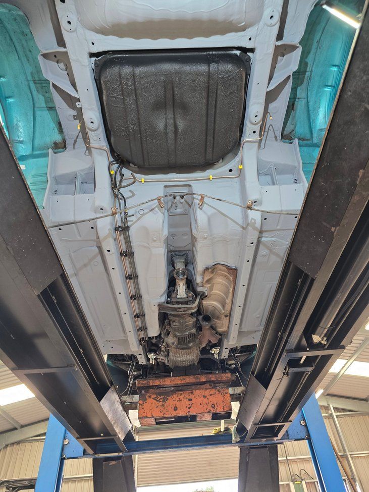 >Fully stripped, pre treated and refurbed underside plus a yearly lanoguard, no rust, just a damaged jacking point, but it was a completely a preventative step. Degreased, sanded, used rust converter treatment all over, raptor coat primer, and upol underseal. Completed by Fairway automotive and myself over a week and a half