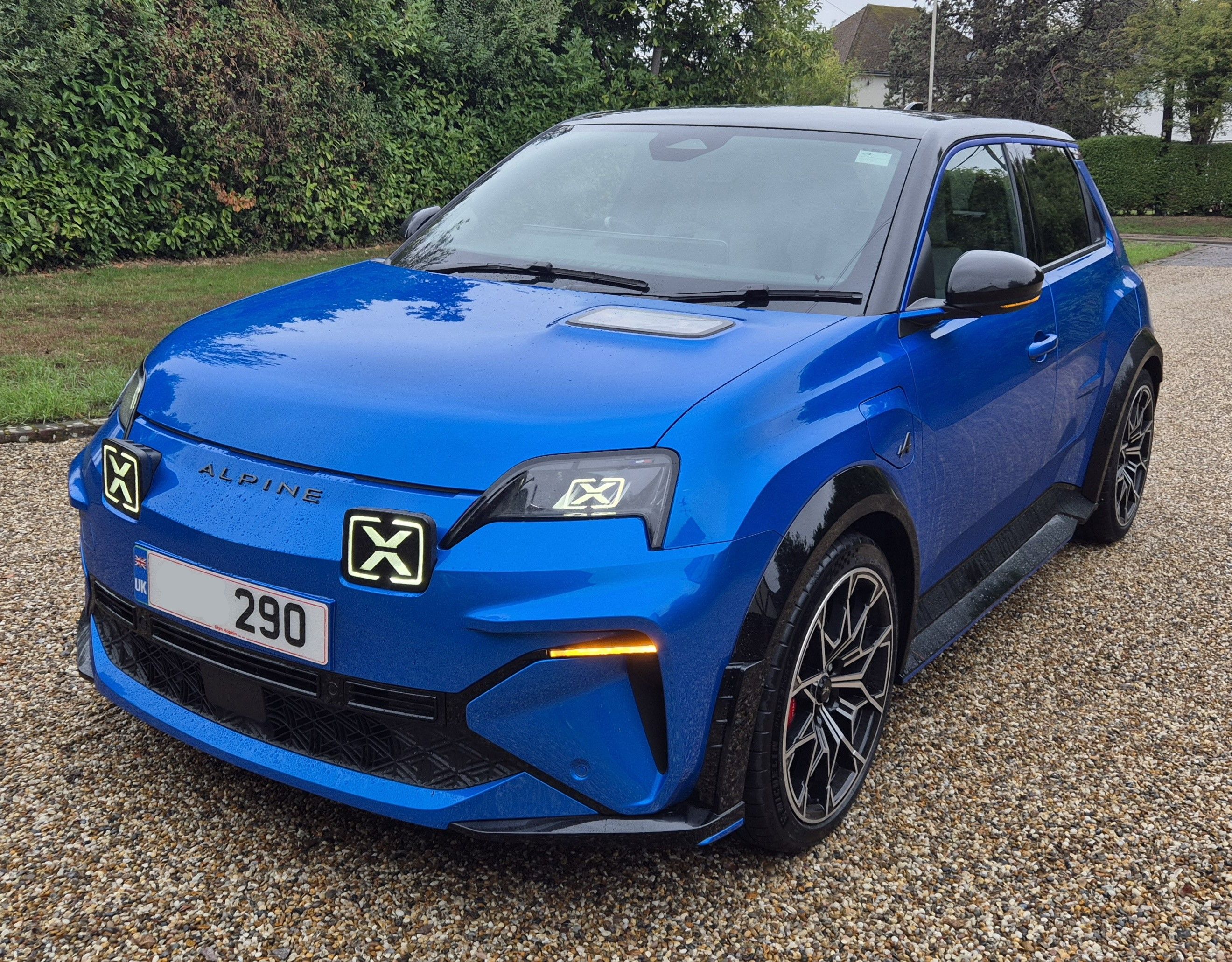 Finally, I got the car back and there is nothing I dislike about it. Not a single thing. I find the performance good for every occasion, but tight little twisty roads are where the A290 excels -- it sticks like shyte to a blanket. Despite what most reviewers have stated, you really have to be pushing it hard to see any understeer on real roads in my experience, whereas understeer and cocking of the rear wheel I presume it can be easily achieved on their little race track at the launch test drive, in Mallorca I recall. On the subject of reviews it became an incredibly tiresome and boring trope whenever 'F1 inspired steering wheel' was mentioned -- as if reviewers were contracted to mention it at least once. Quite what the steering wheel has in common with the steering wheel of an F1 car other than being in charge of turning the wheels, remains a mystery to me. Ditto reviewers mentioning the front brakes being transposed from the A110, however these are excellent. I'm led to believe that some EVs feel a bit grabby when applying the brakes when regen is already doing its thing but it's a completely smooth transition in the A290. The red 'OV' overtake button by your right thumb is a gimmick and I don't really find myself using in place of mashing my foot down when I want to overtake something. The three different levels of regenerative braking are effective, with the fully coasting mode supposedly the most efficient for maximising range, and full regen mode almost feeling like one pedal driving, although it won't come to a complete stop like a Kia EV and others, so not truly one pedal but it goes down to 8mph before you are forced to use the brake pedal. The menus, settings, instrument cluster and array of buttons on the steering wheel are a bit overwhelming to begin with but soon becomes quite easy to navigate with loads of customisation options. The transition between different instrument displays and screens in the instrument cluster is very laggy and jolty, I'd be interested to know if other owners experience the same.