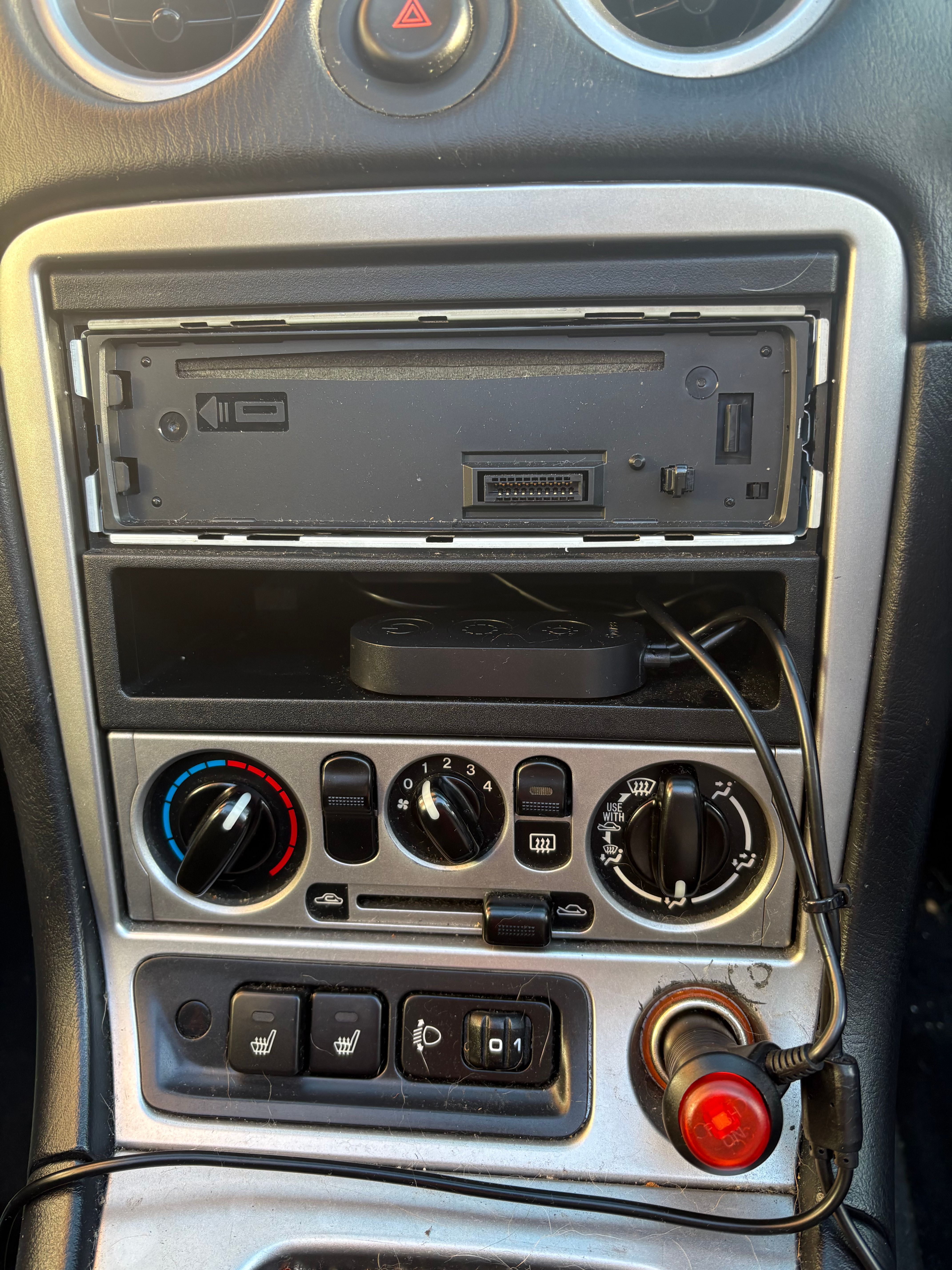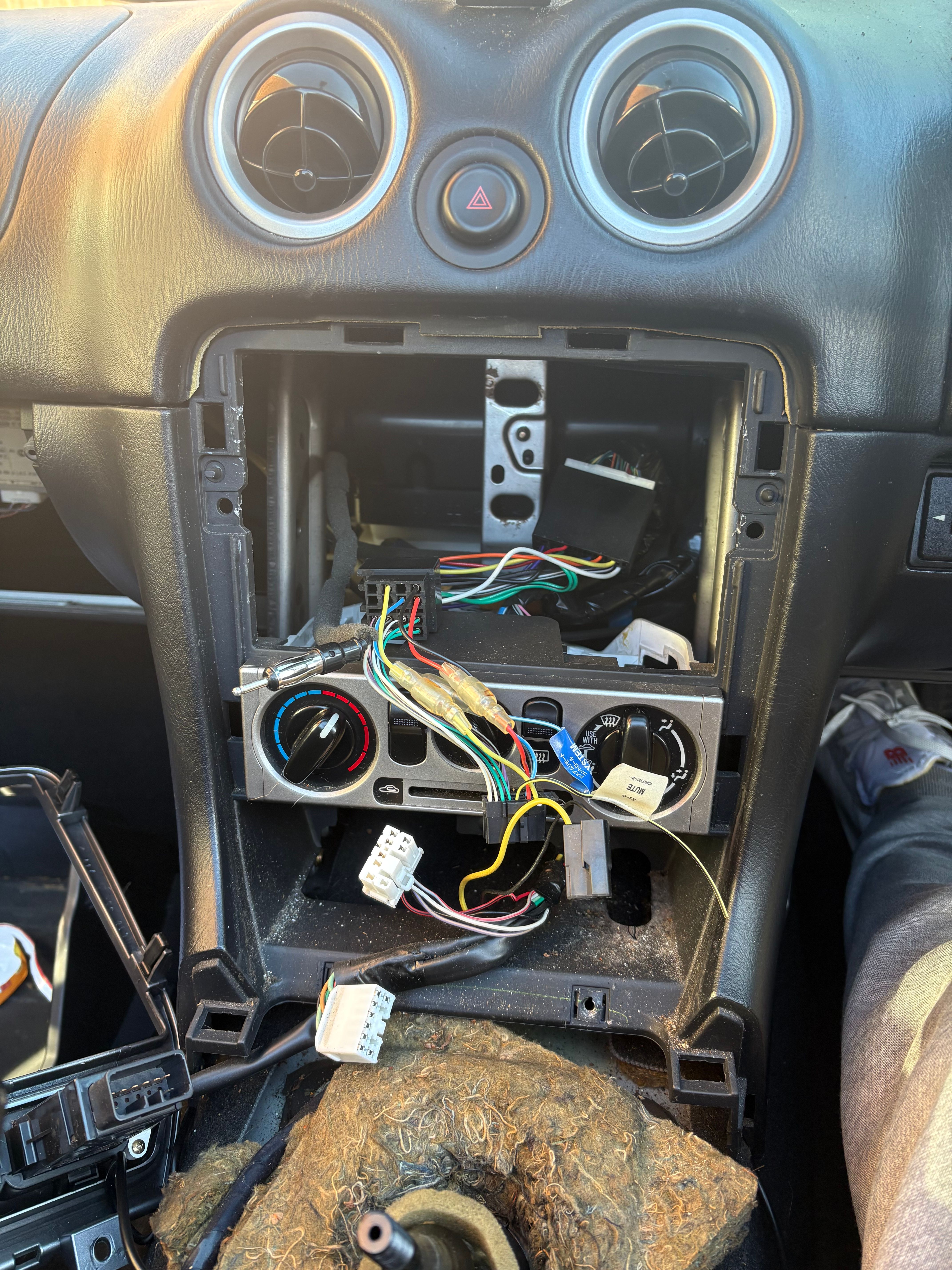 The new lot was then chucked in, went in pretty well to be honest. I ran the reversing camera feed under the transmission tunnel so that it was there if I wanted to fit a camera at some point. Turns out I did want to fit one so glad I did. I also ran an additional mic up to the steering cowl in an attempt to improve call quality. And this is what I was left with.