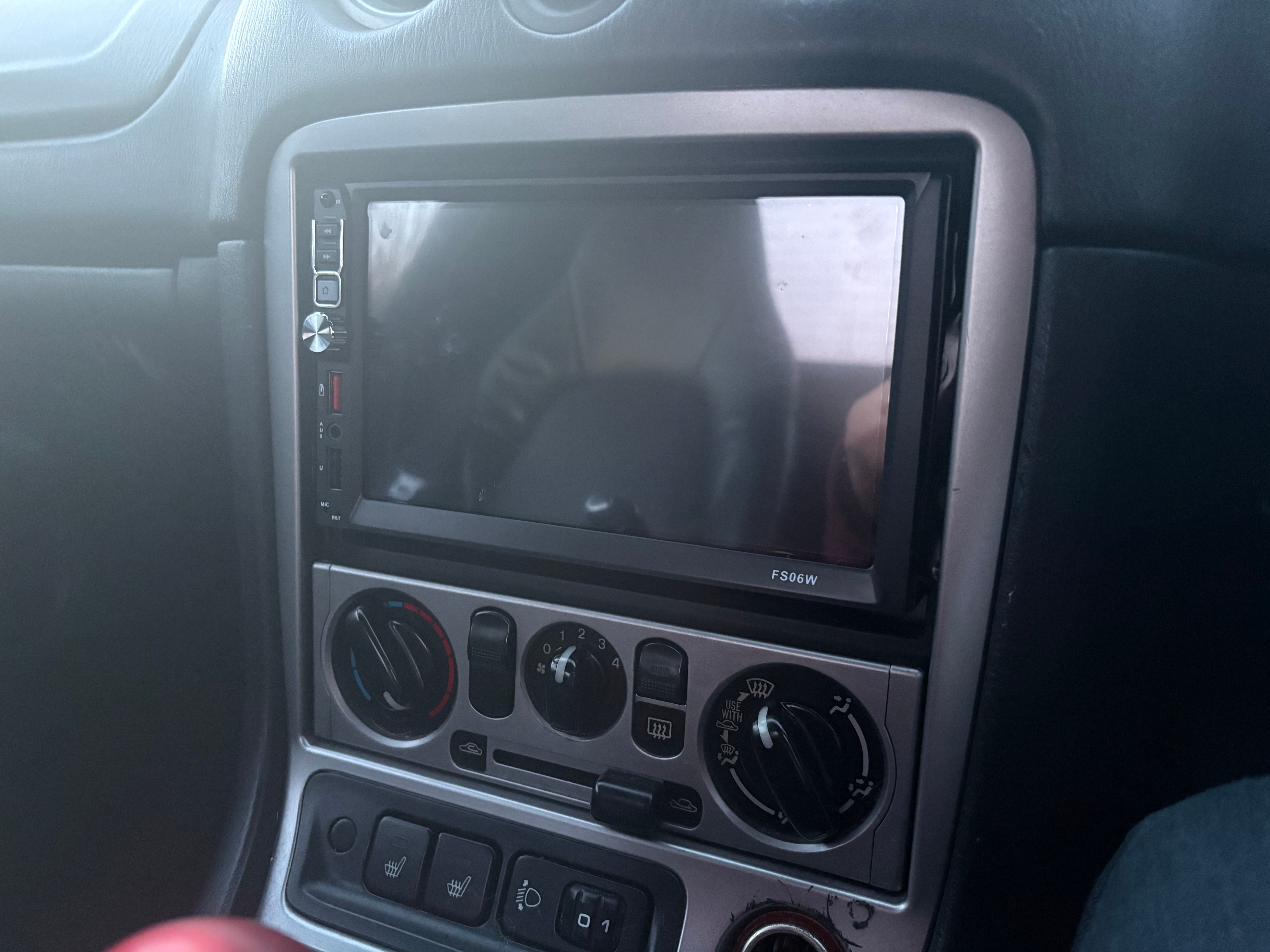 With the car being used a lot more, the lack of hands free was starting to irritate me. So I set about changing out the old radio for a double din car play thing. I set out and bought the finest Chinese unit I could find for less than a tank of fuel. The original thing looked like this.