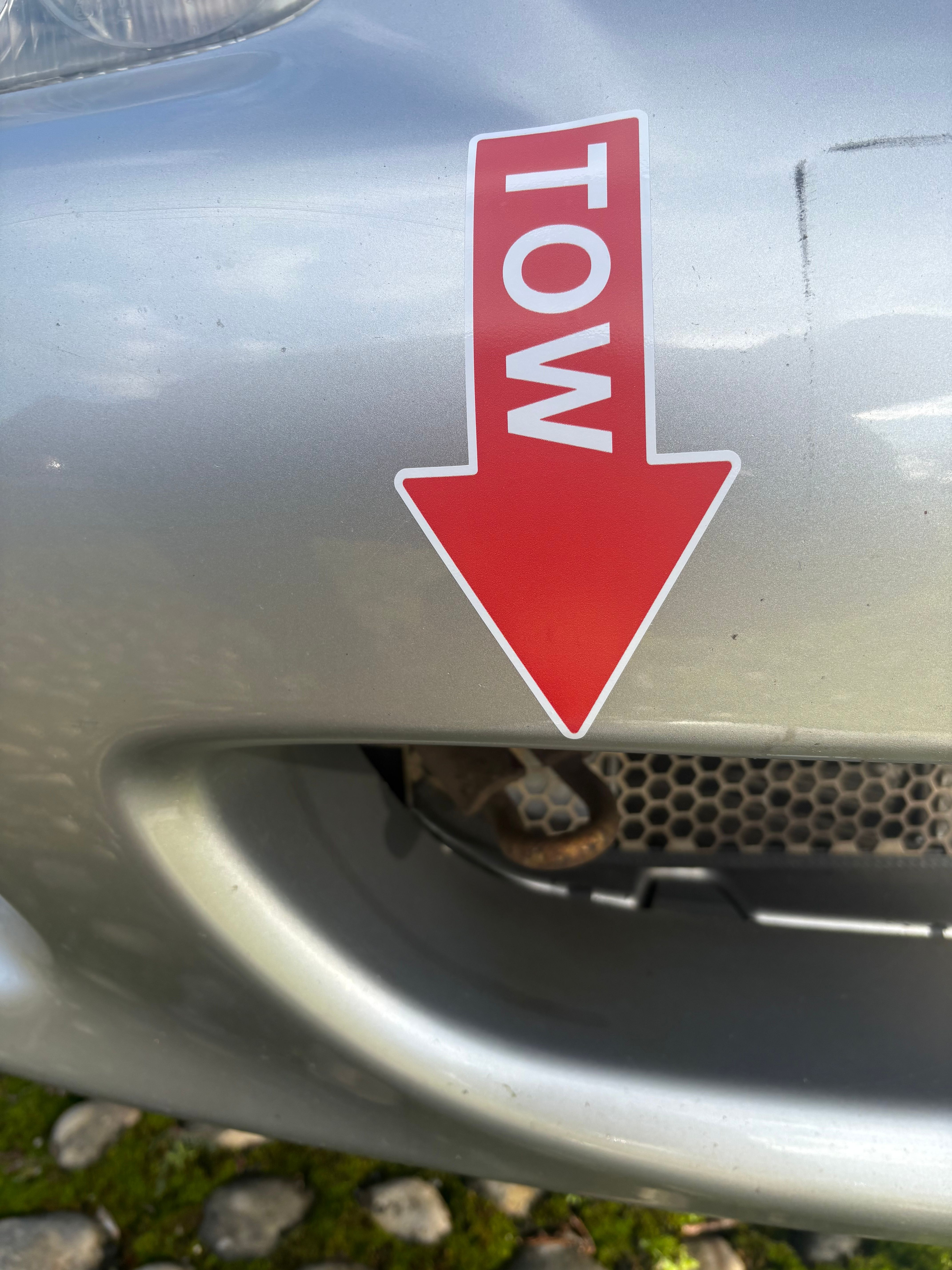 Bit of a delay here, but in preparation for my track day, I checked the basics you need to check, read the regulations, which seem to be different wherever you go, but removed the locking wheel nuts, thought the last thing I need is faffing around and realising I can t find the key on the day! And fitted some tow markers. I realise now the tow markers are pretty obnoxious, but where they re fixed, and not exactly obvious, I thought a huge sticker might help, plus I painted them red. I have made some bolt on front and rear hooks, but didn t get chance to do them.