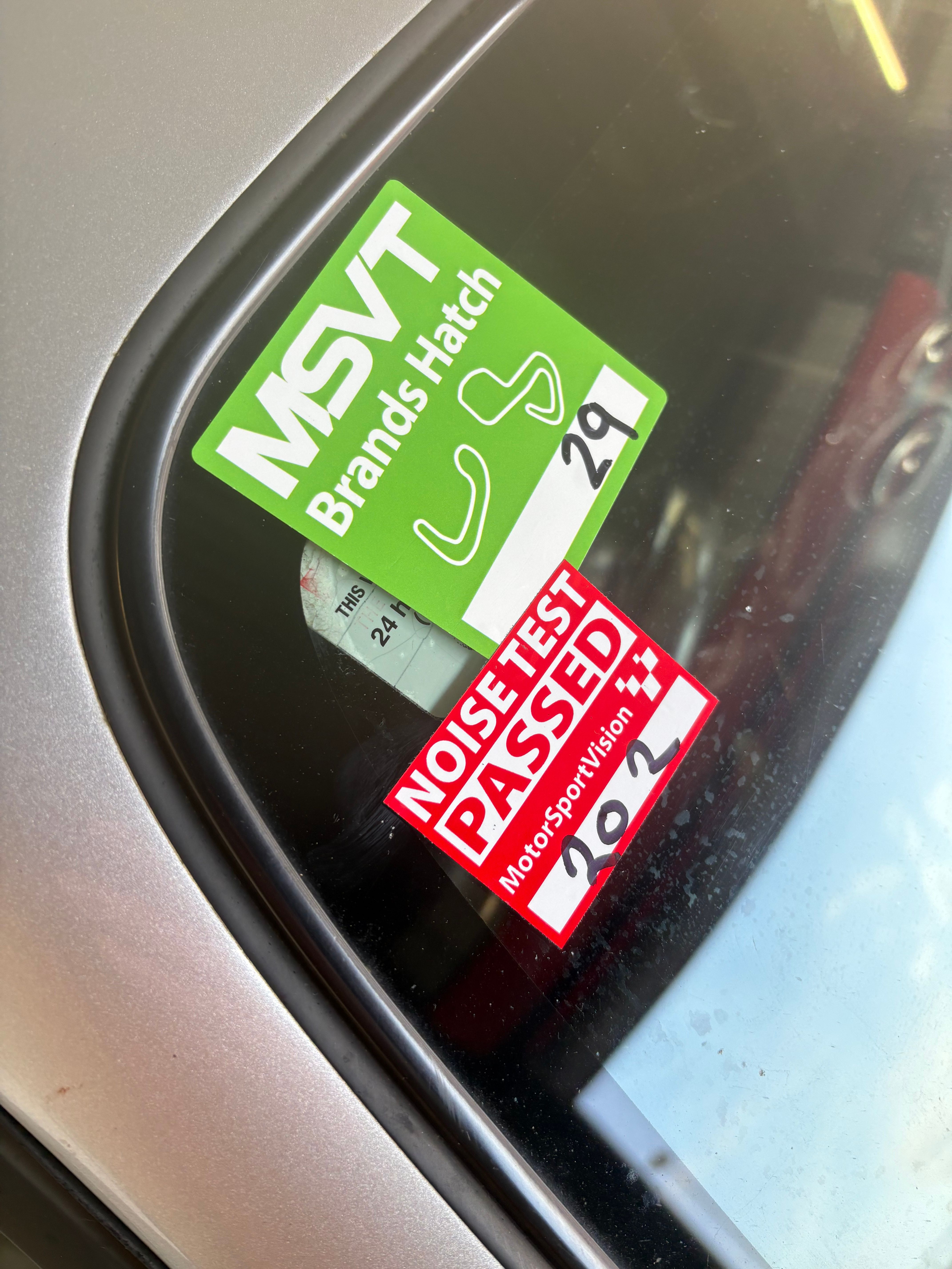 Then I saw everyone driving past and realised it was noise testing time So off we went. Hold it at five two please I thought you sure? I don t even know if this thing goes up to 5.2!! But it did, 98db and another sticker applied.