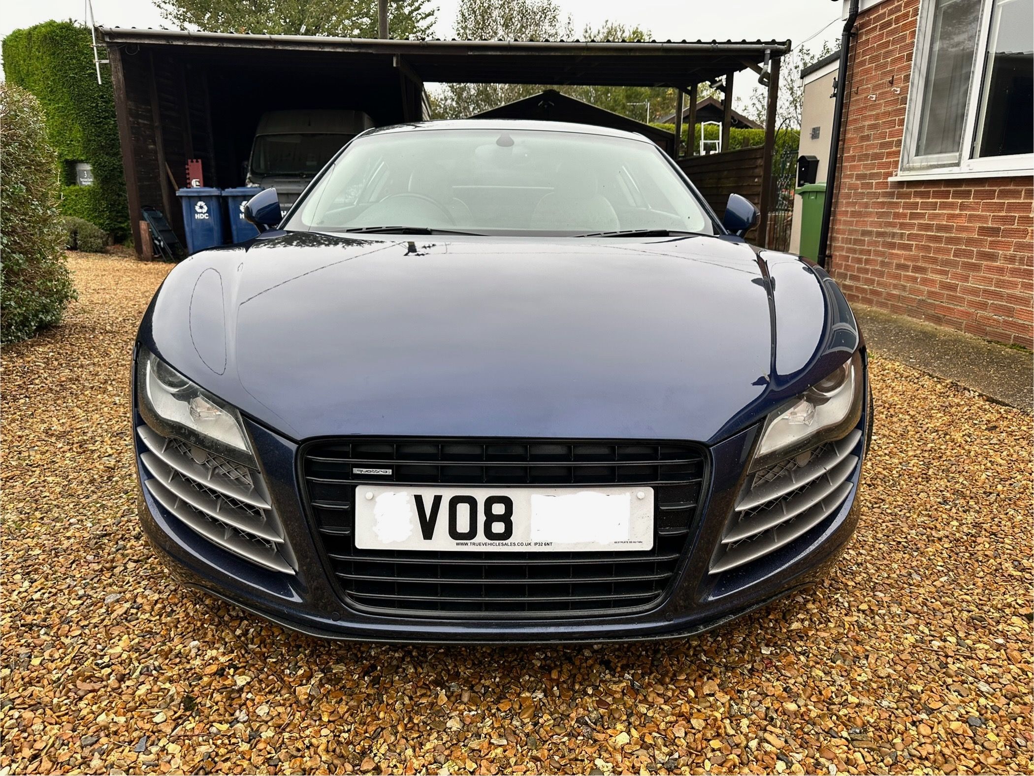 Enter an ad for an R8 in Bury St Edmands, give or take an hours drive. I went over the Ad, emailed the dealer back and forth a bit and on a drizzly overcast Saturday morning we jumped into Mrs geeks car and set off to have a look. On arrival the dealer handed me the keys, popped the trade plates on the dash and sent us both out for a test drive with a suggested route and to take our time. We spent 30 minutes giggling and very much deciding it was the one. On return we did a deal and it was set for delivery mid October.