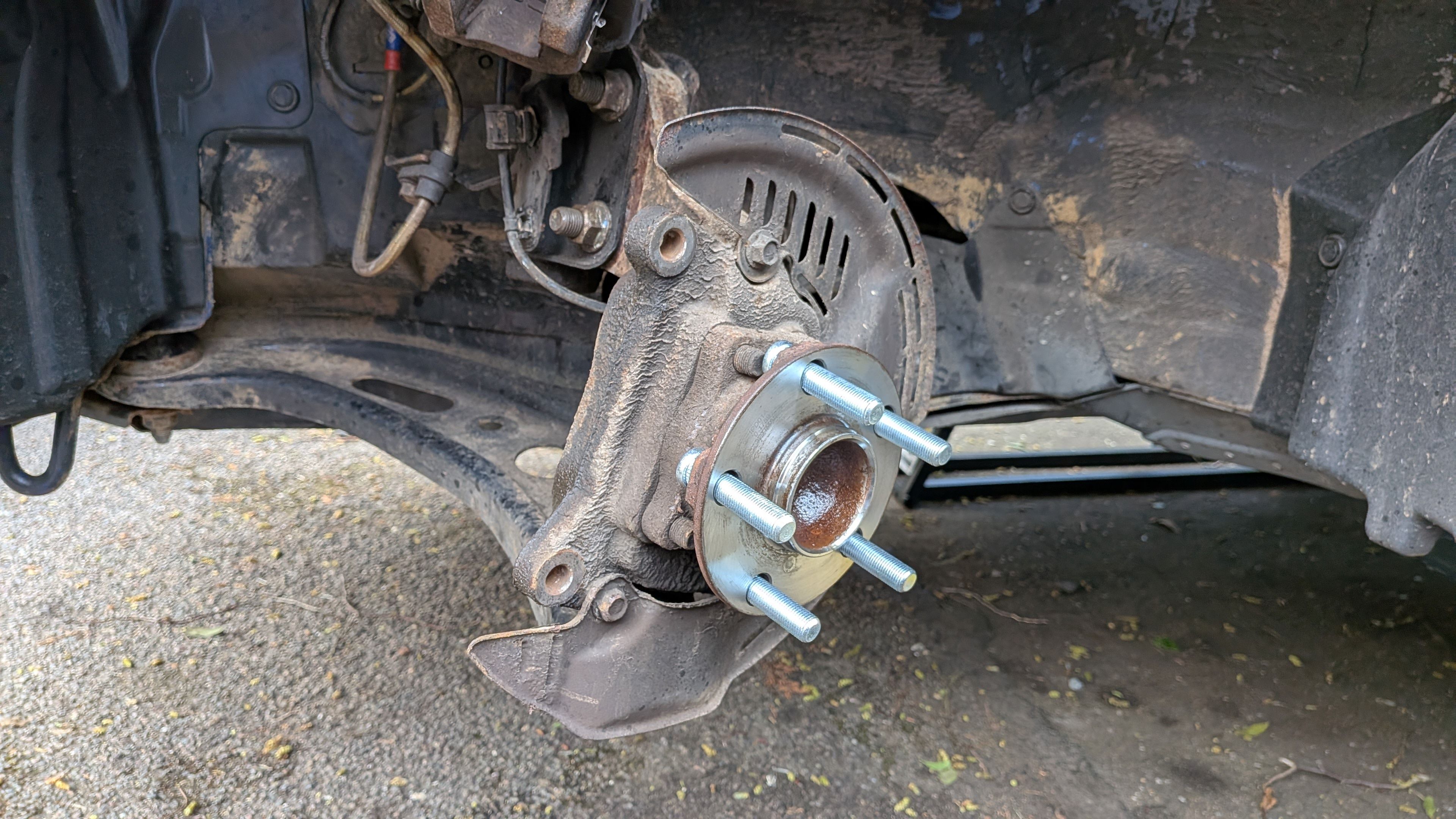 Replaced the factory studs with 10mm longer ones, fortunately these could be slipped in to place without having to undo anything beyond taking the disc off