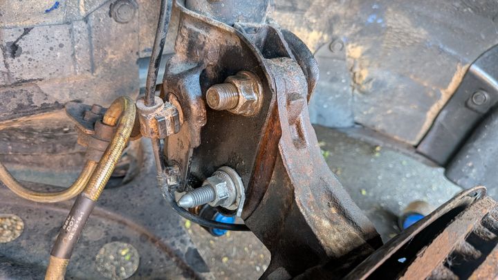 Attempted to put some camber bolts in but couldn't work out the tang on the washer on one side, wasted about an hour scratching our collective heads before deciding it'll be on coilovers soon so perhaps just admit defeat this time...