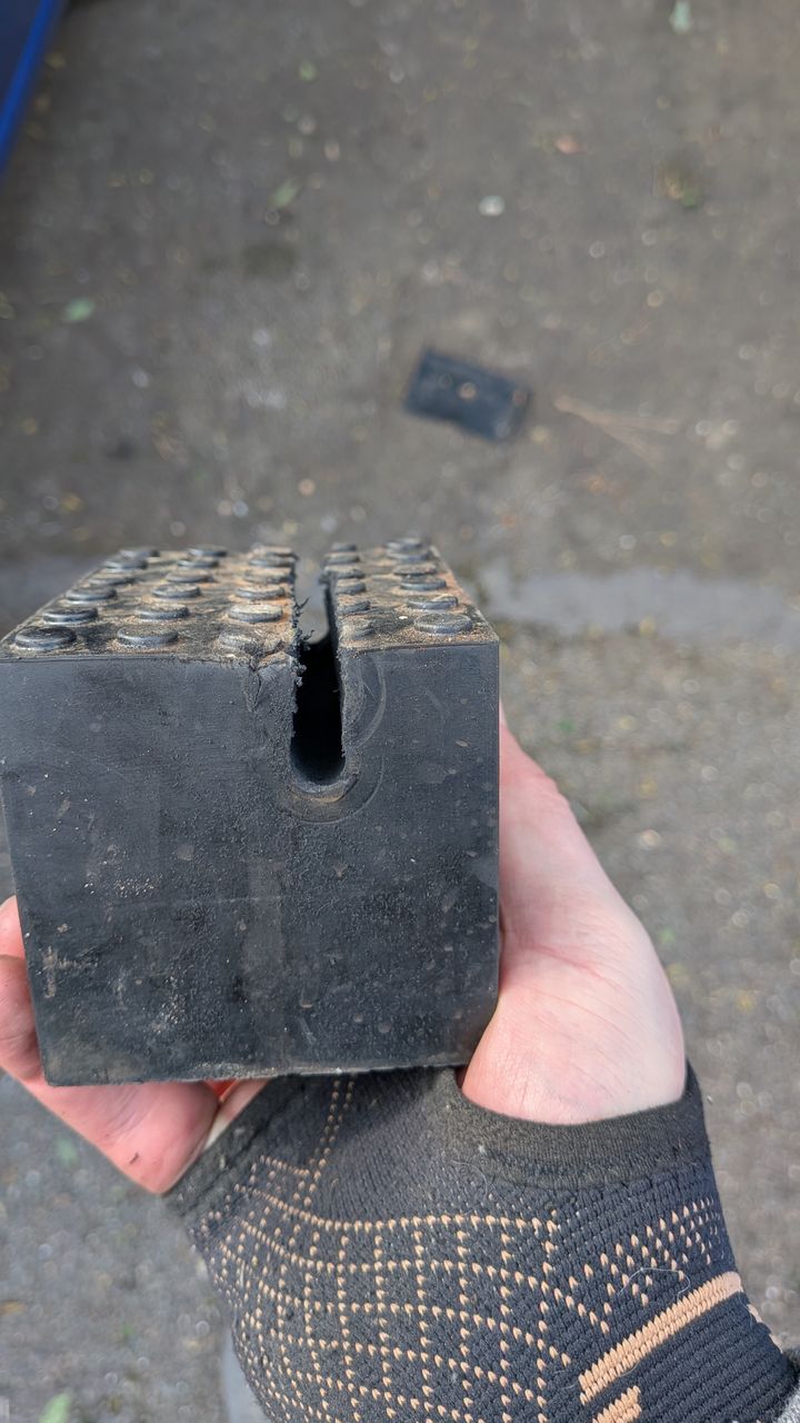 So I thought I'd do one side at a time, and just made a recess in one of the rubber blocks to protect the pinch welds.
