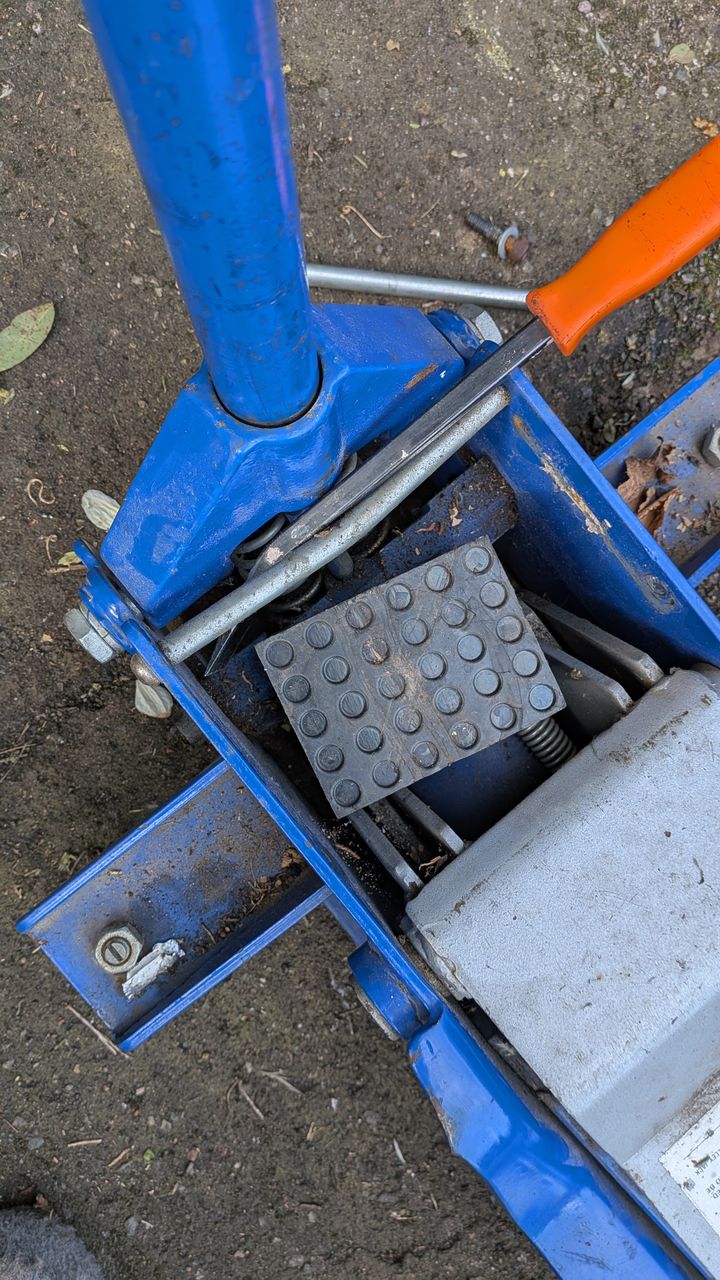 Then it turns out I had to fix the jack as this metal bar was so bent that the handle had run off the end of the springs used to pump it.