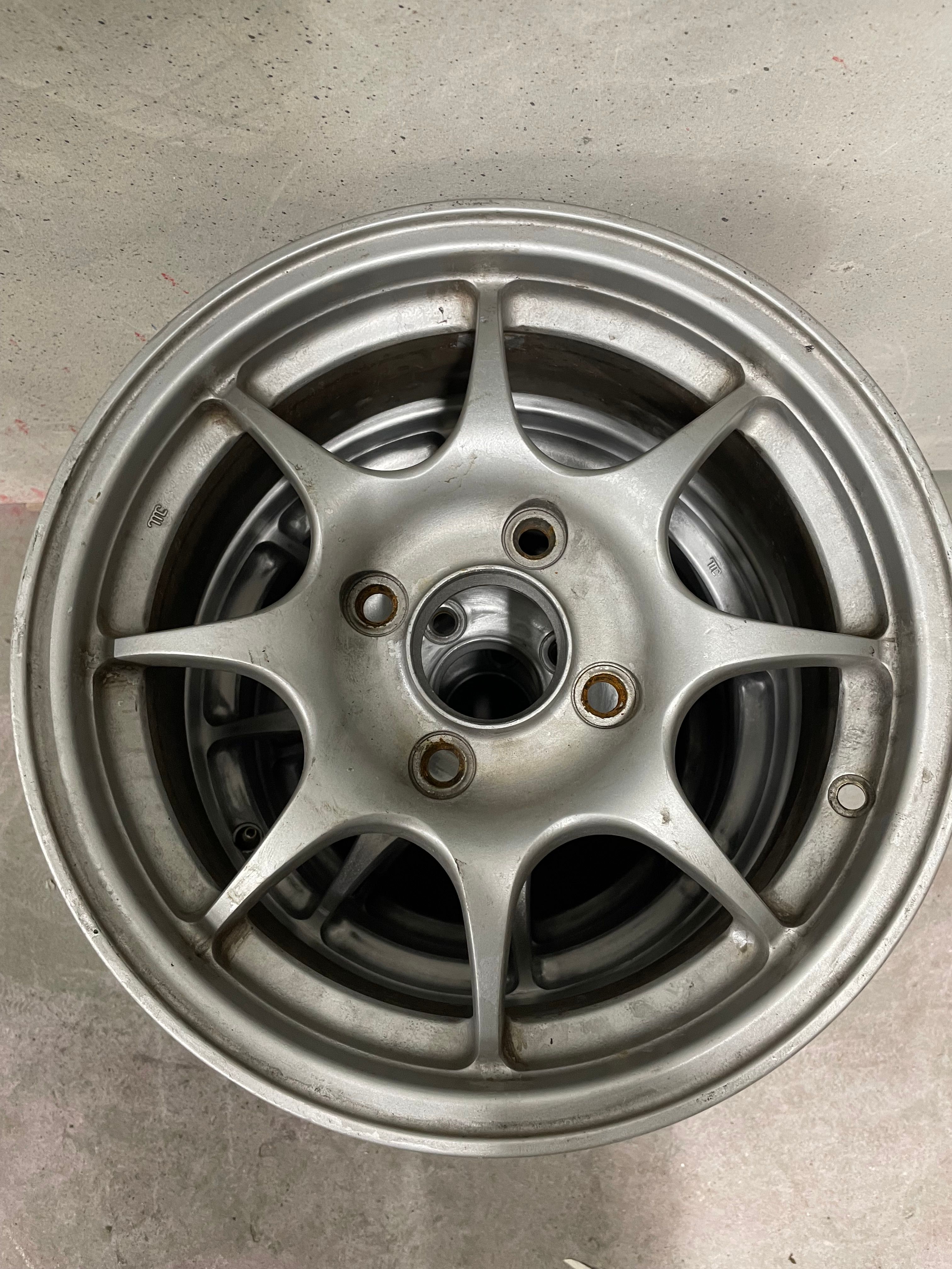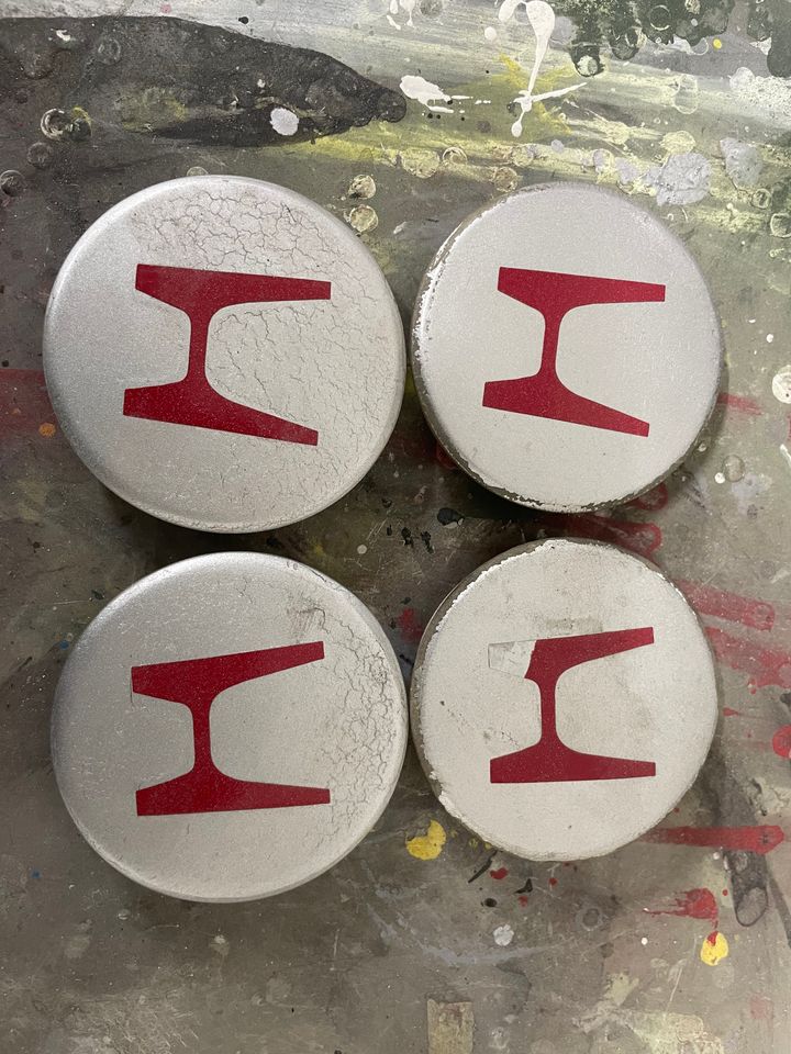 they only cost £47 shipped from china! They re not electric but for 47 quid the quality is surprisingly good! I had to dismantle the originals down to the base and with a bit of fettling I managed to attach the Spoon mirrors to the original base. Original Spoon mirrors are finished in satin silver but I decided to paint mine body colour. As the original mirrors had side repeaters in them that meant I had to fit new side repeaters to the front wings. And my latest purchase is a set of JDM DC2 wheels and a set of 4x114.3 pcd adapters. The wheels needed a refurb and new rubber.