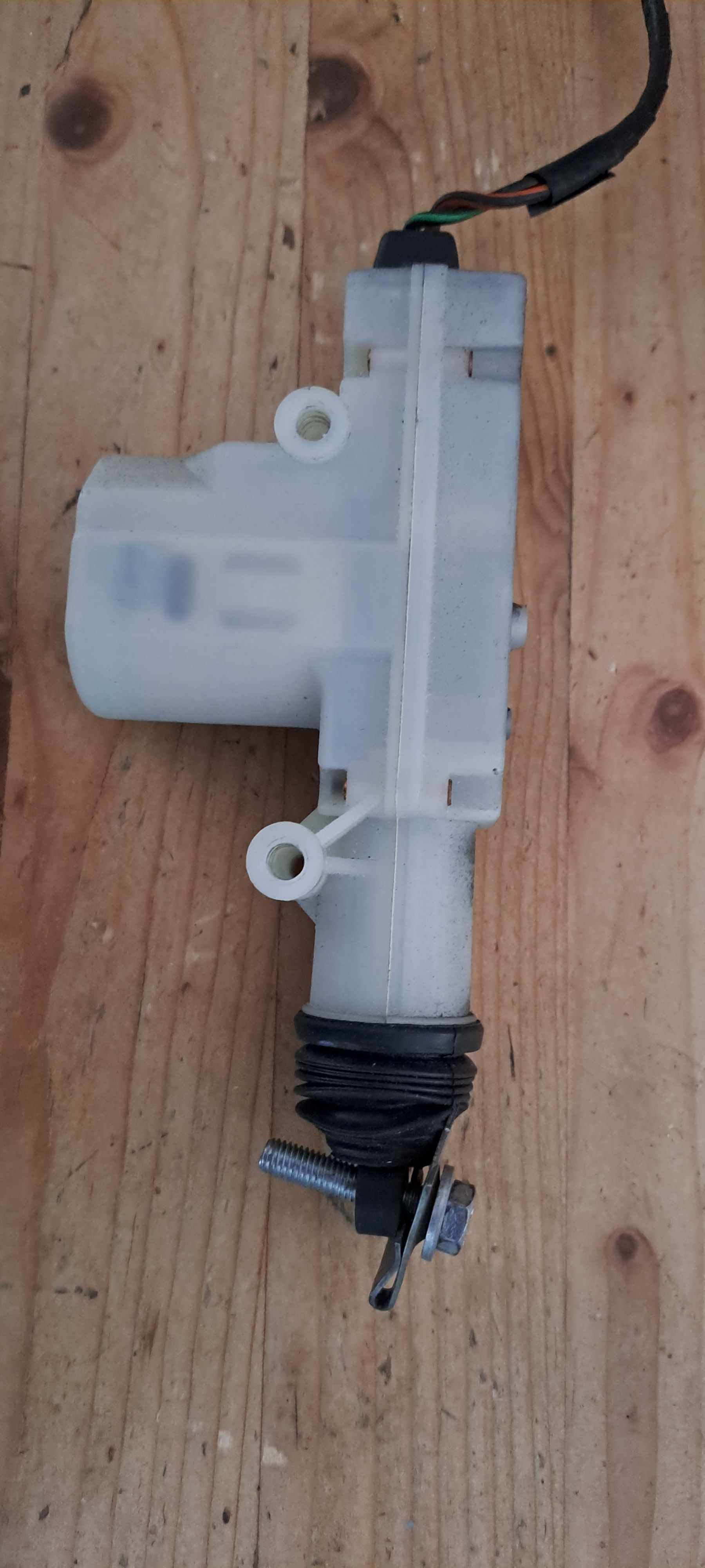 The above is the driver door solenoid/actuator that has almost given up the ghost, the rubber boot has come away which I have reattached and there seems to be a bodge job on the end of the piston!