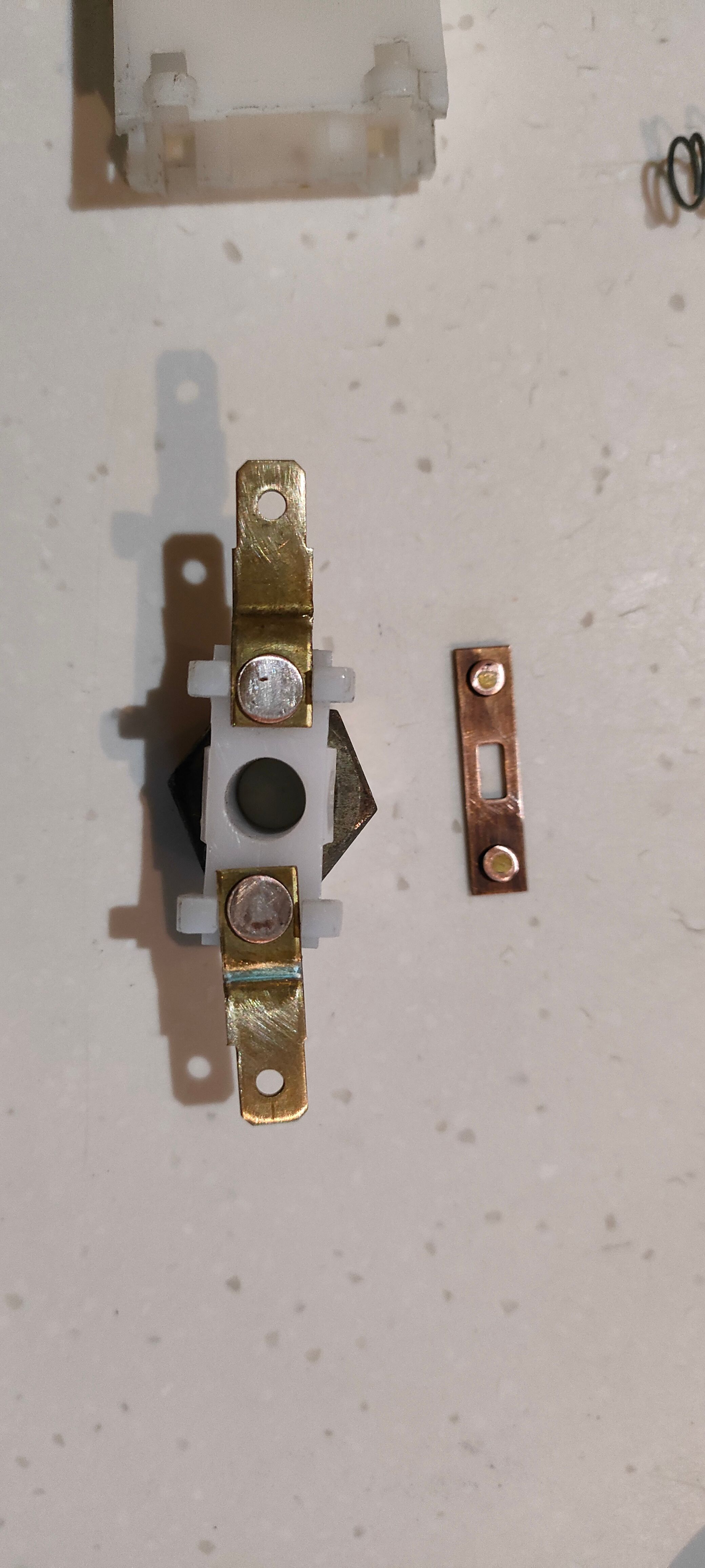 On mine the connectors on the bar and the terminals had got a bit corroded and worn from use, so I very gently sanded them down and bent the connecting bar slightly so that the was more push on the terminals when the spring pushed the bar and plunger back up