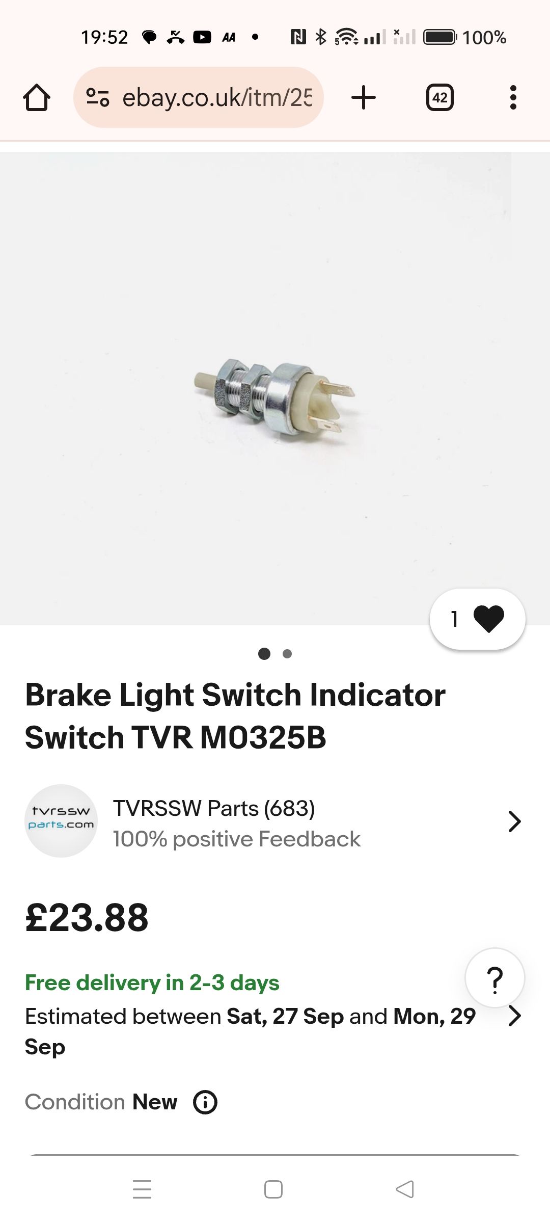 Eurocar parts, $13.49 plus £3.5 deliveryI went with the Lucas one as that is actually sold on eBay as a direct TVR replacement so sounded like it would definitely fit