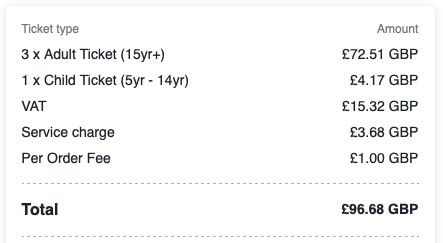 I am unable to go now as I am double booked, so have 3x adult and one child ticket available (as per below)- ideally I'd like them to all go together if possible... Tickets will be sent on receipt of cleared payment (I don't believe that it is possible to officially transfer, so will plan to send on by email).