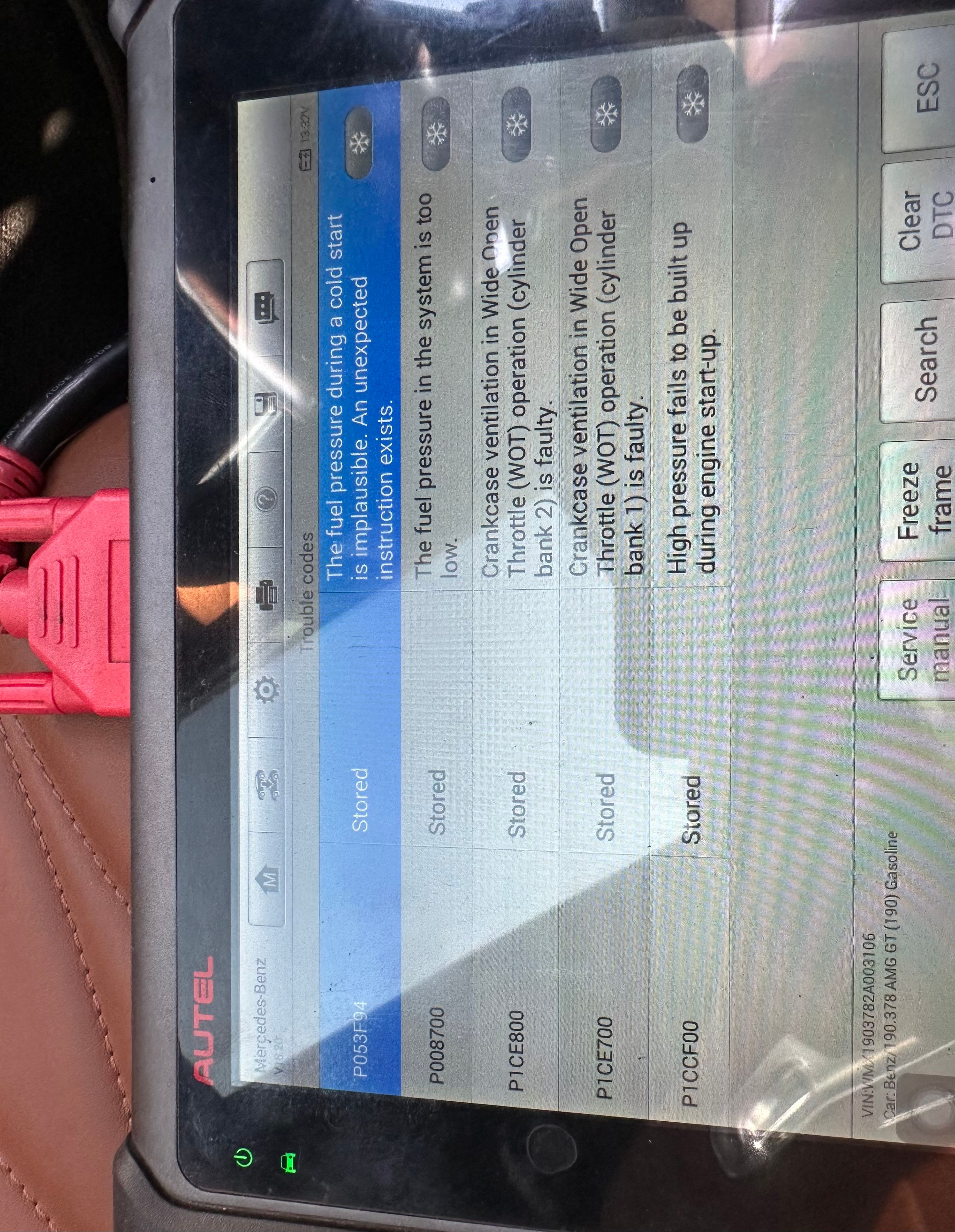 Got my mate to plug in and had these codes come up.