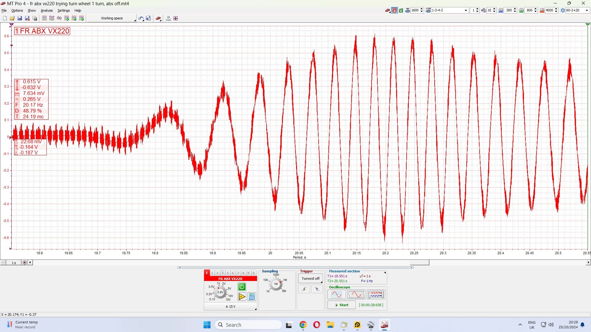 Even here with my OEM ABS, simply turning the wheel by hand, you can see first tooth or two is not as strong as those once speed picks up. But they are still distinct enough to be seen.