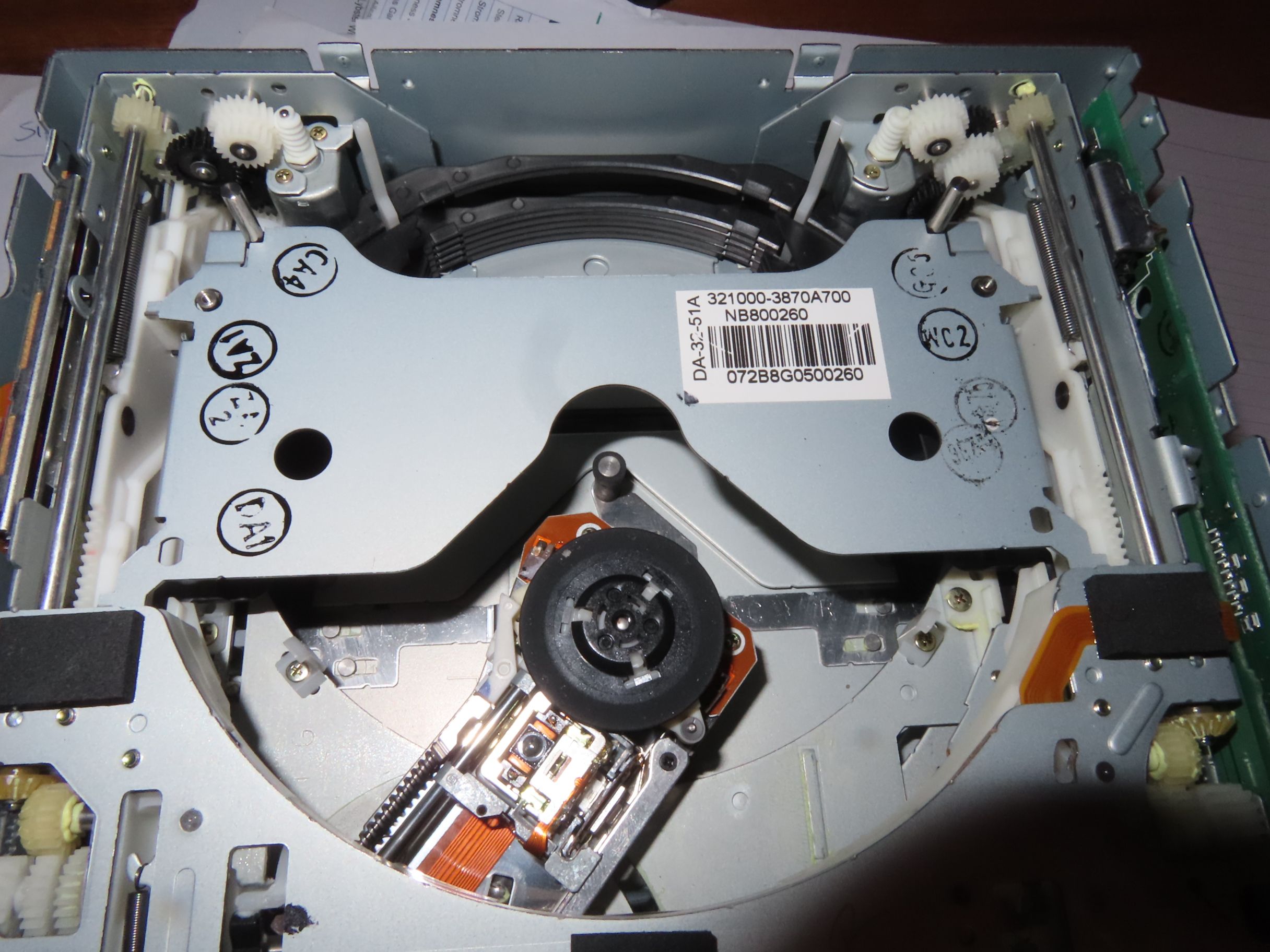 Top lid of the changer is off and front control panel removed, but its rather stubbornly hiding its secret lens.
