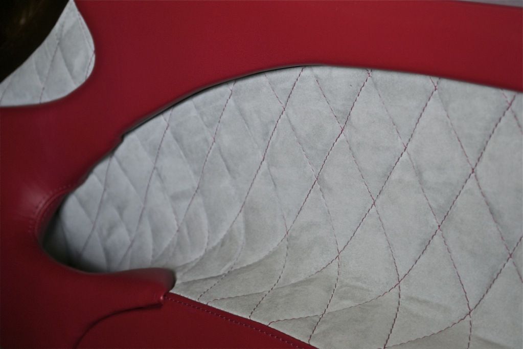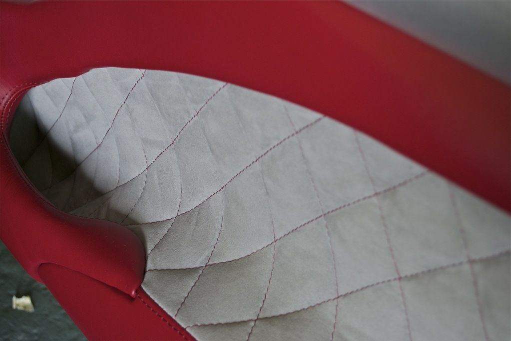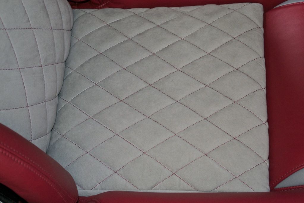 The seats as they are now are quilted with alacntara using scrim foam, have new ingleston red leather and heron grey inserts.