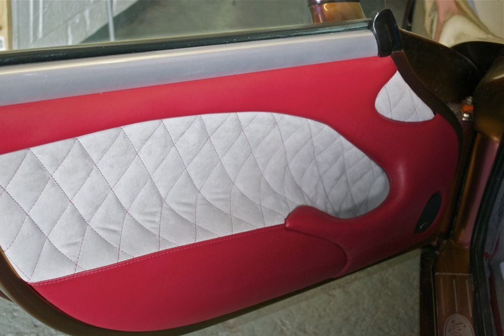gators done in ingleston red leather. The refoam under the console was done using 3mm plaztazote with