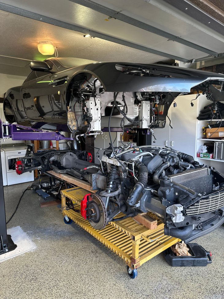 Sticky legs , that idiot will be me then !! to change the engine the body does require lifting fully off the subframes , drive train etc .Unless you know another way ? (probably not technically the chassis but as good as )