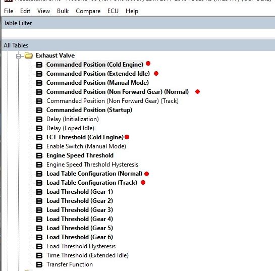 As a performance tuner, I can see the exhaust data tables and manipulate them with other performance tune data changes.