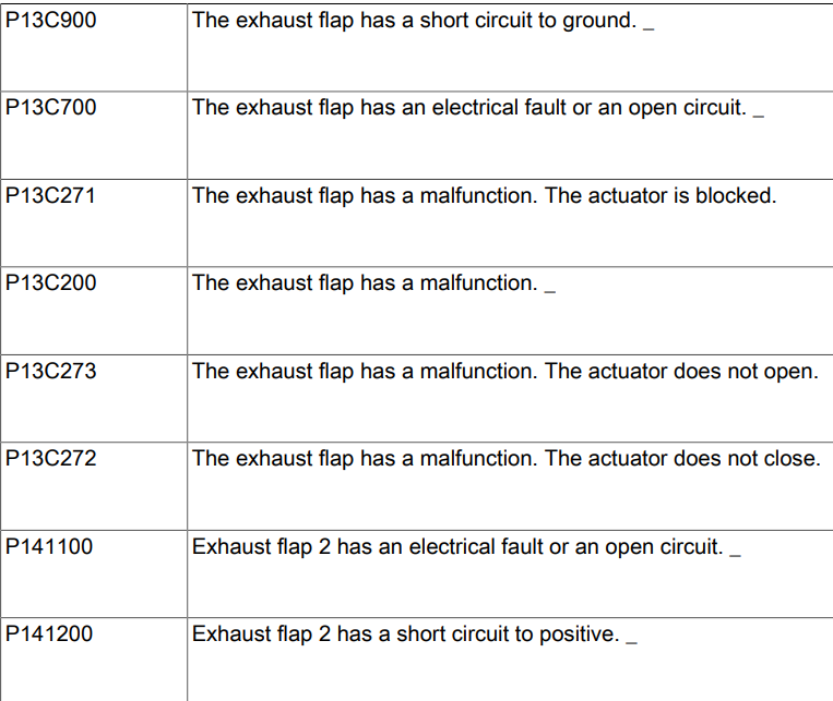 When things don't go well, maybe a failed step motor, or a stuck (often rusted) exhaust flap, some power train codes that can be produced: