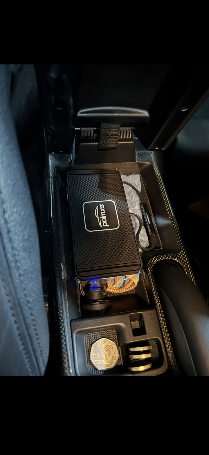 I also installed a wireless charger in the centre armrest, so I don t need to worry about battery drain on long journeys. I ve also left a charging cable in the centre console plugged in to the IDCore unit, so I can charge 2 phones at once.