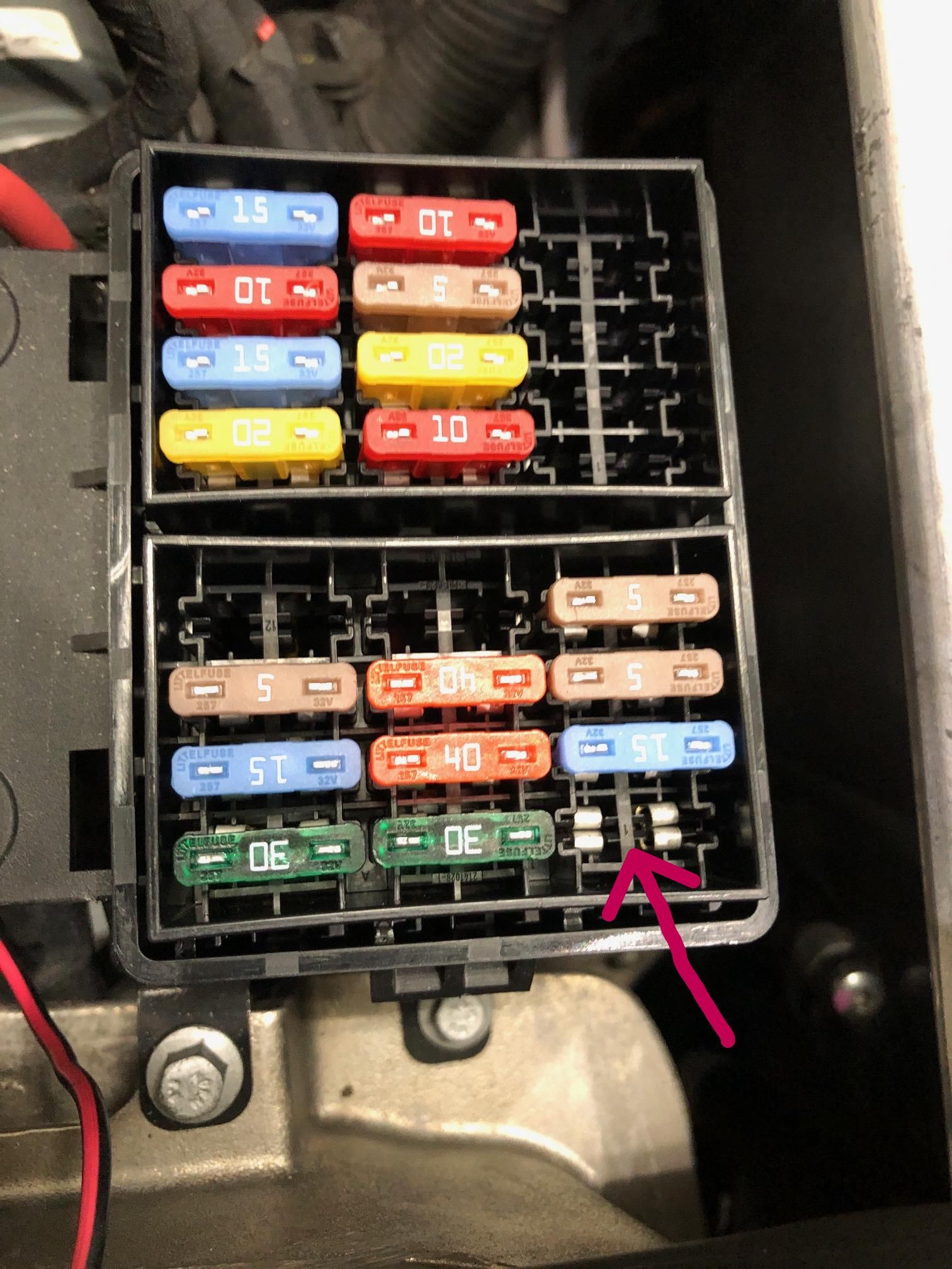 Before disconnecting any harnesses I put the RH side (master) ECM to sleep. This is instead of disconnecting the battery so I could maintain all other electronics live throughout the car. To accomplish this I pulled the 5a fuse in position 1. This is the ECM fuse.