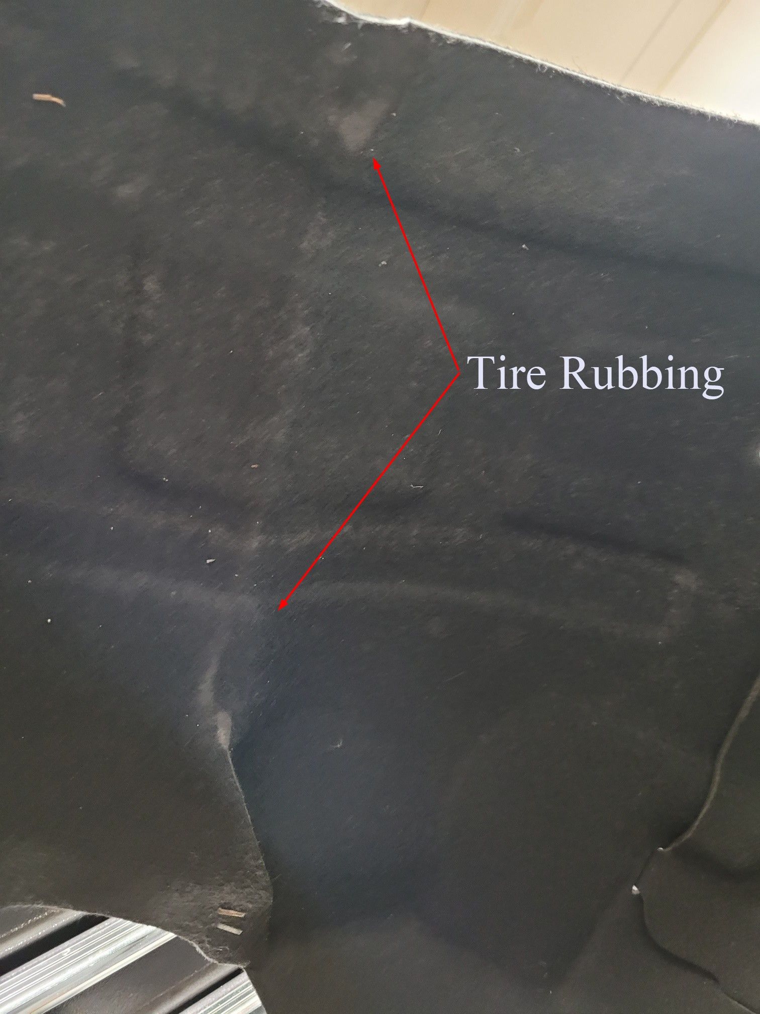 It's a section about 3" wide, outside and on the inside. The underside of the cupping is also starting to rub on the tire a bit.