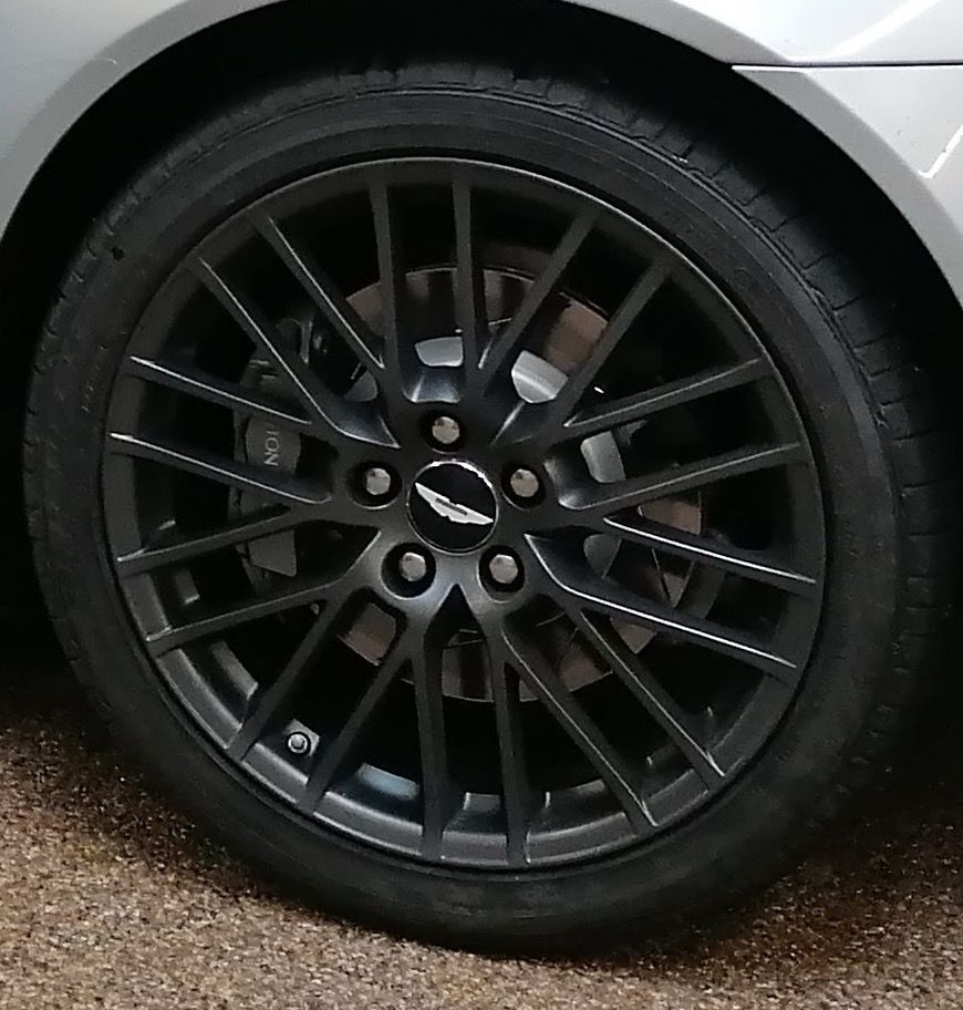 I didn't know the colour code, but the painter took a quick look and - without referring to any colour charts - just said "that's Aston Martin Light Anthracite, semi-gloss finish". Apparently he'd done lots of them, and could recognise the colour at a glance. This is what it looks like...