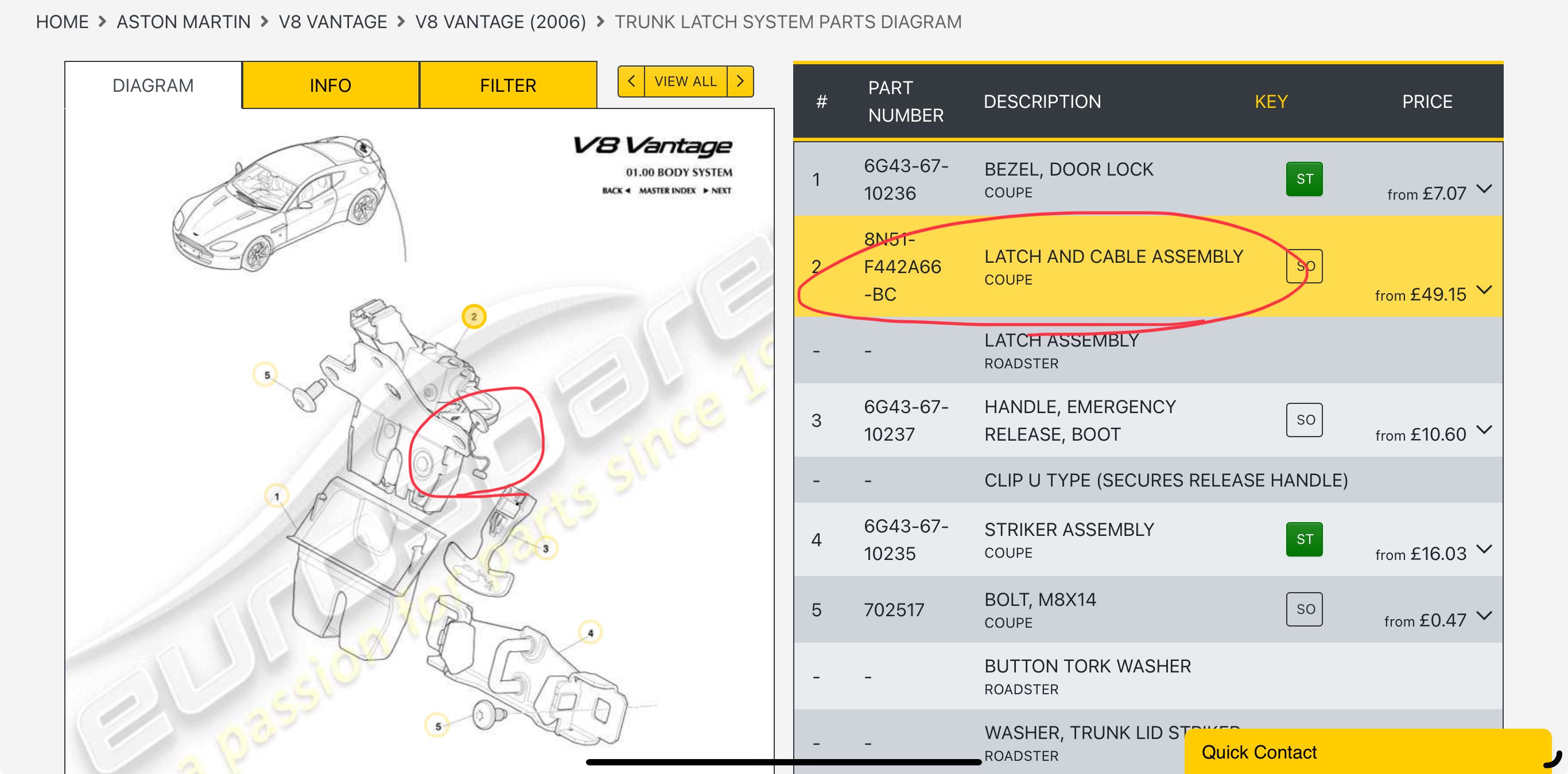 I couldn't be bothered taking the hatch apart just to see if I could replace the cable with something from the local bike shop, so I just bit the bullet and bought a new latch from Aston Martin Bits.I'll fit it when the garage temperature is closer to double figures...