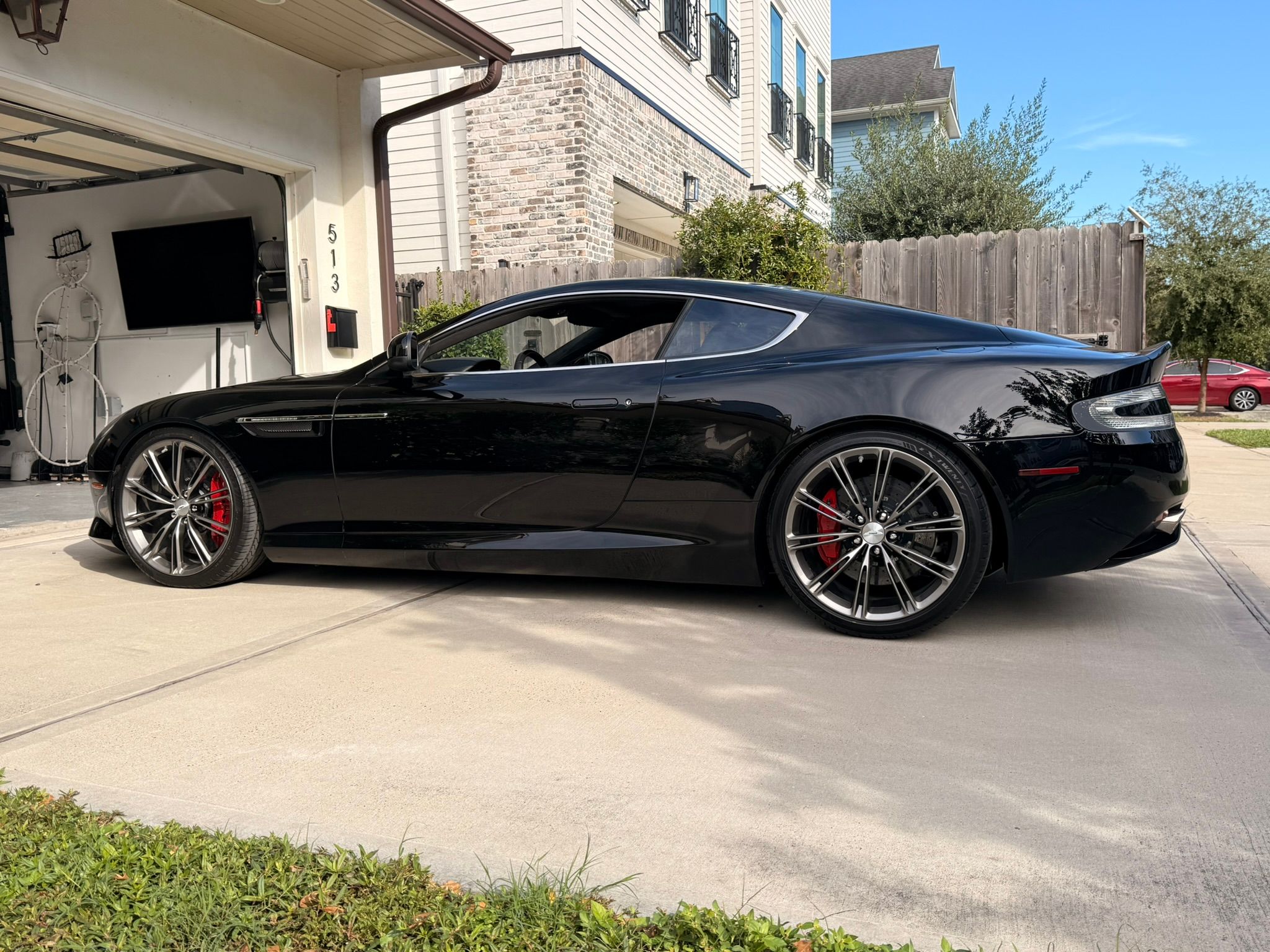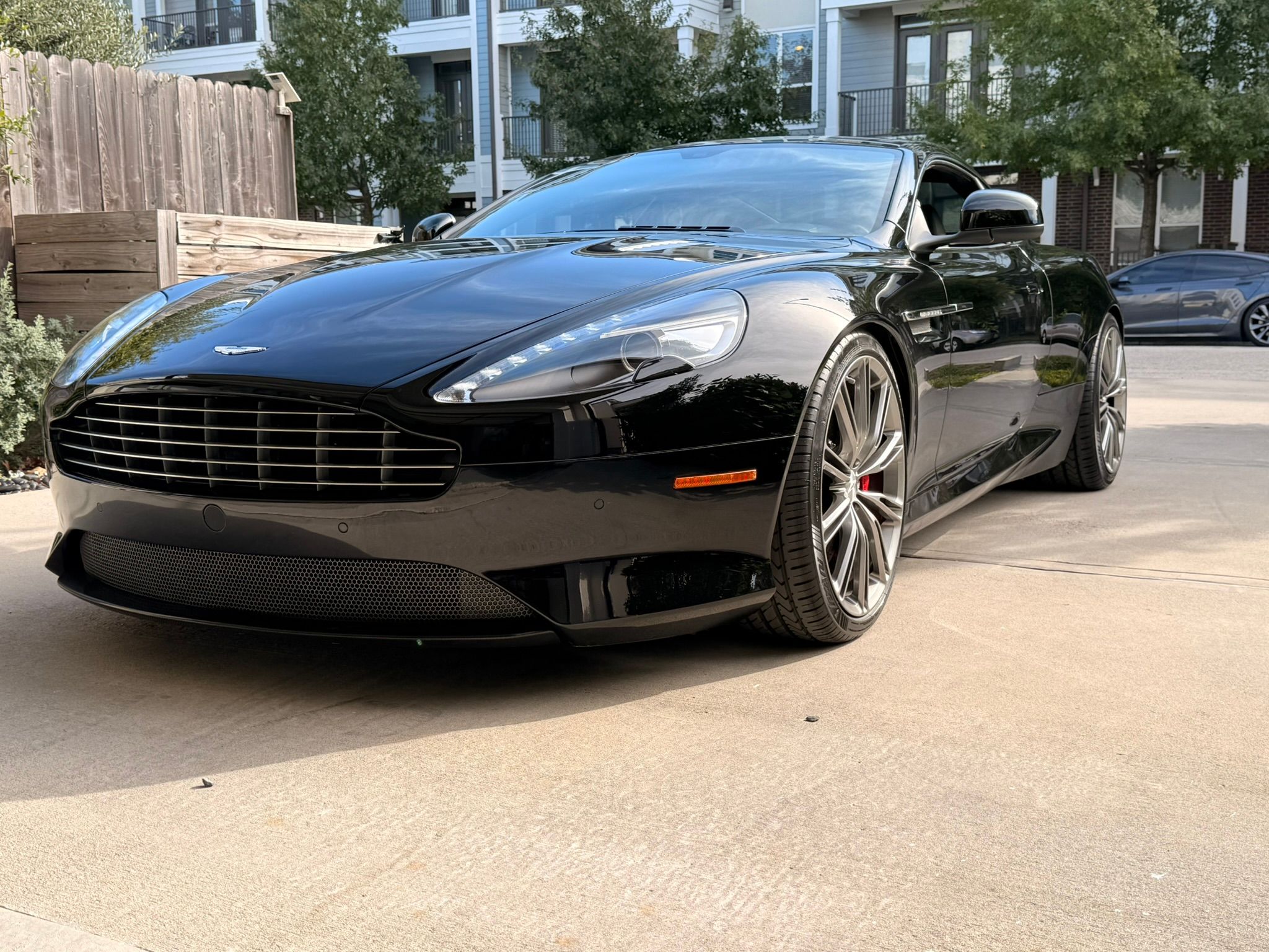 I always thought that the production DB9 was a bit higher than it should be, and the while the OEM wheels look great, their offset is pretty bad....setting them far into the fenders. Not the look that Ian Callum called for in his original design sketches, but hey, the factory had to account for the less 'discerning' driver who might encounter curbs and ramps!