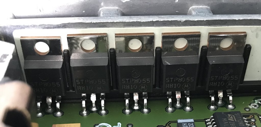 I have just opened a friends ECU to find a blown component (not the transistors in the photo) It's on the other side perpendicular to the 6 transistors.