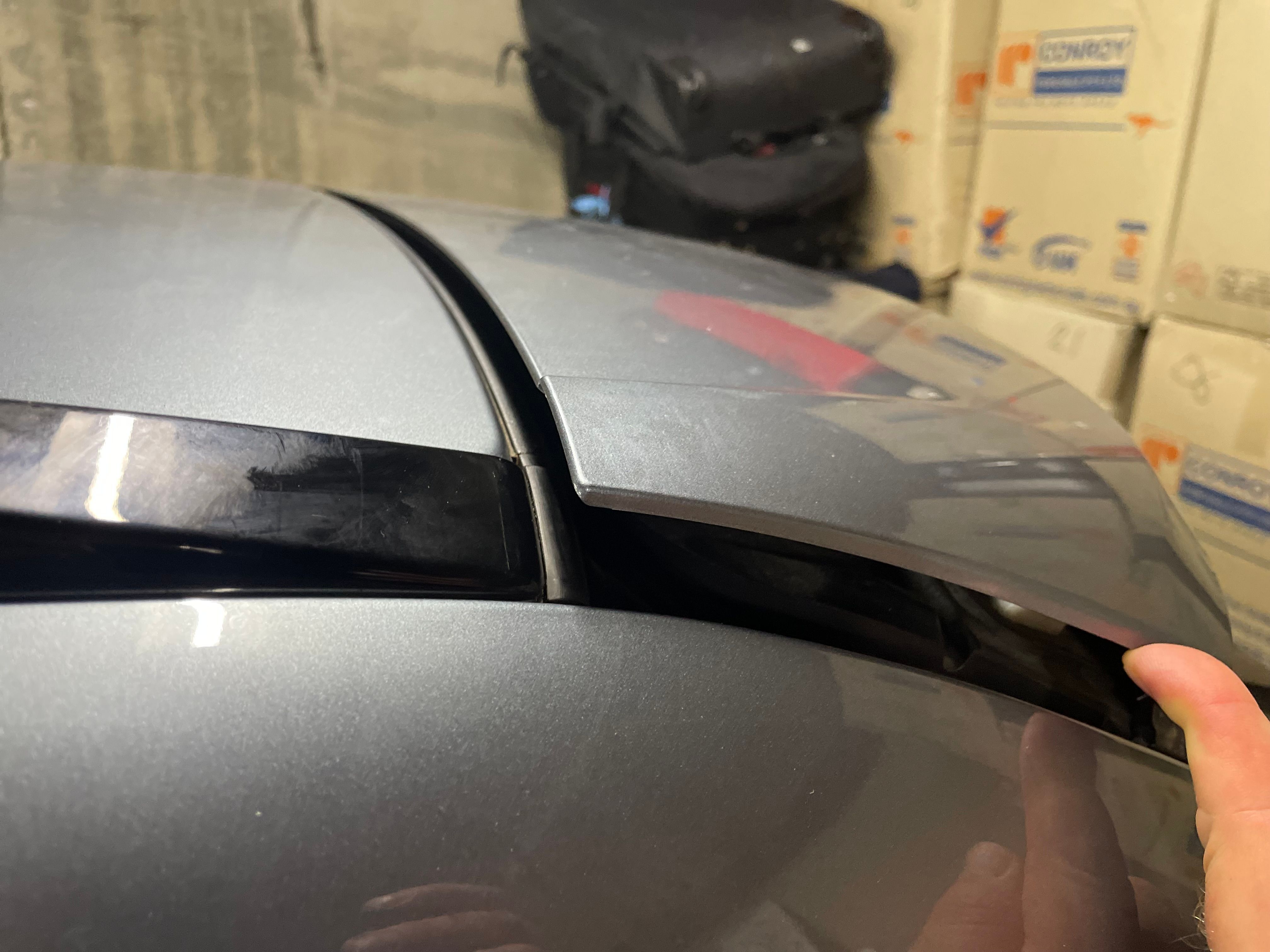 Something clouted the top of my spoiler and the mounting 'bit' is broken on one side.