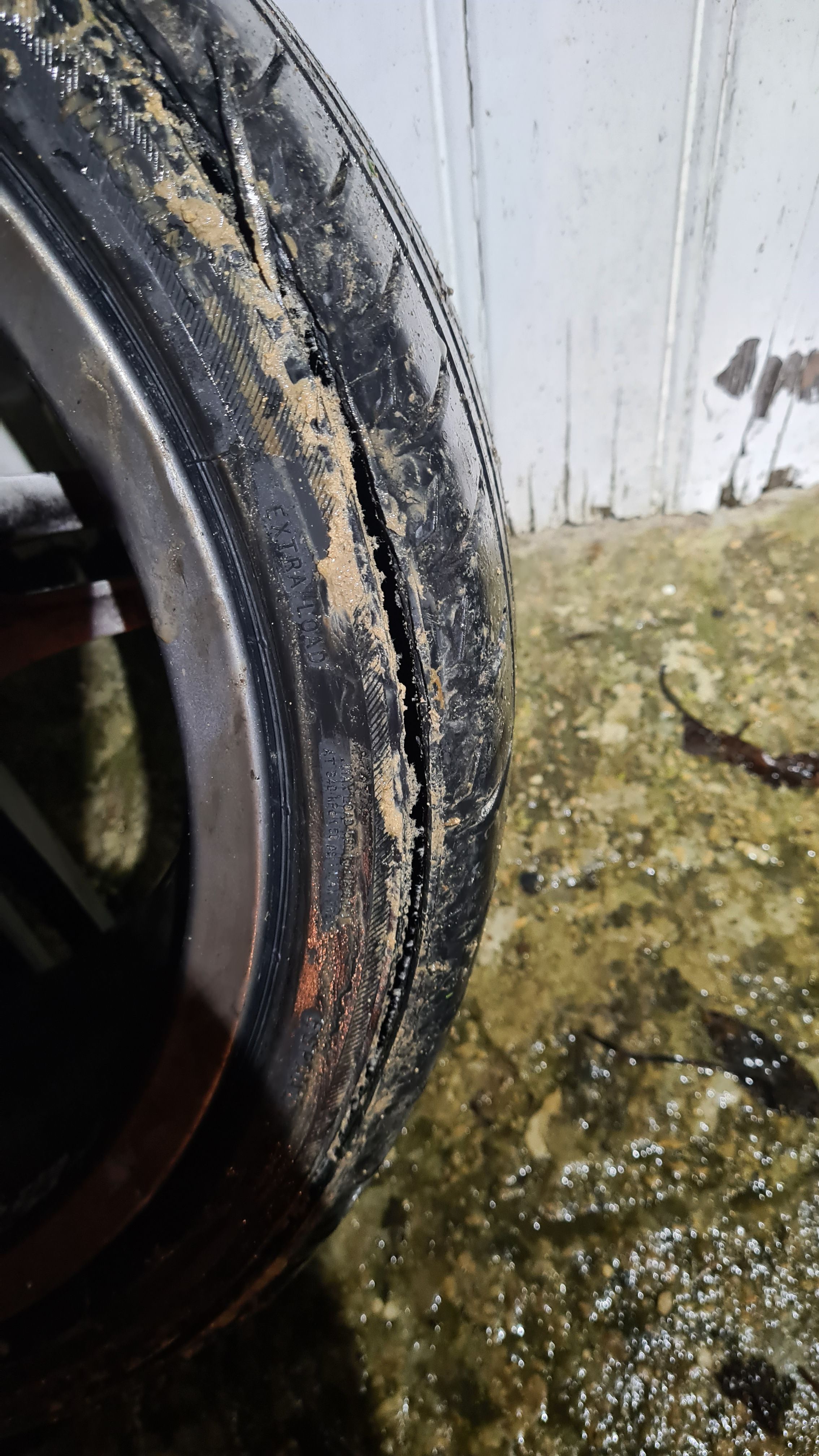 There was no way it was moving without intervention. I reversed the car 2m and the spring cut the tyre clean into two. That cut goes all the way round.