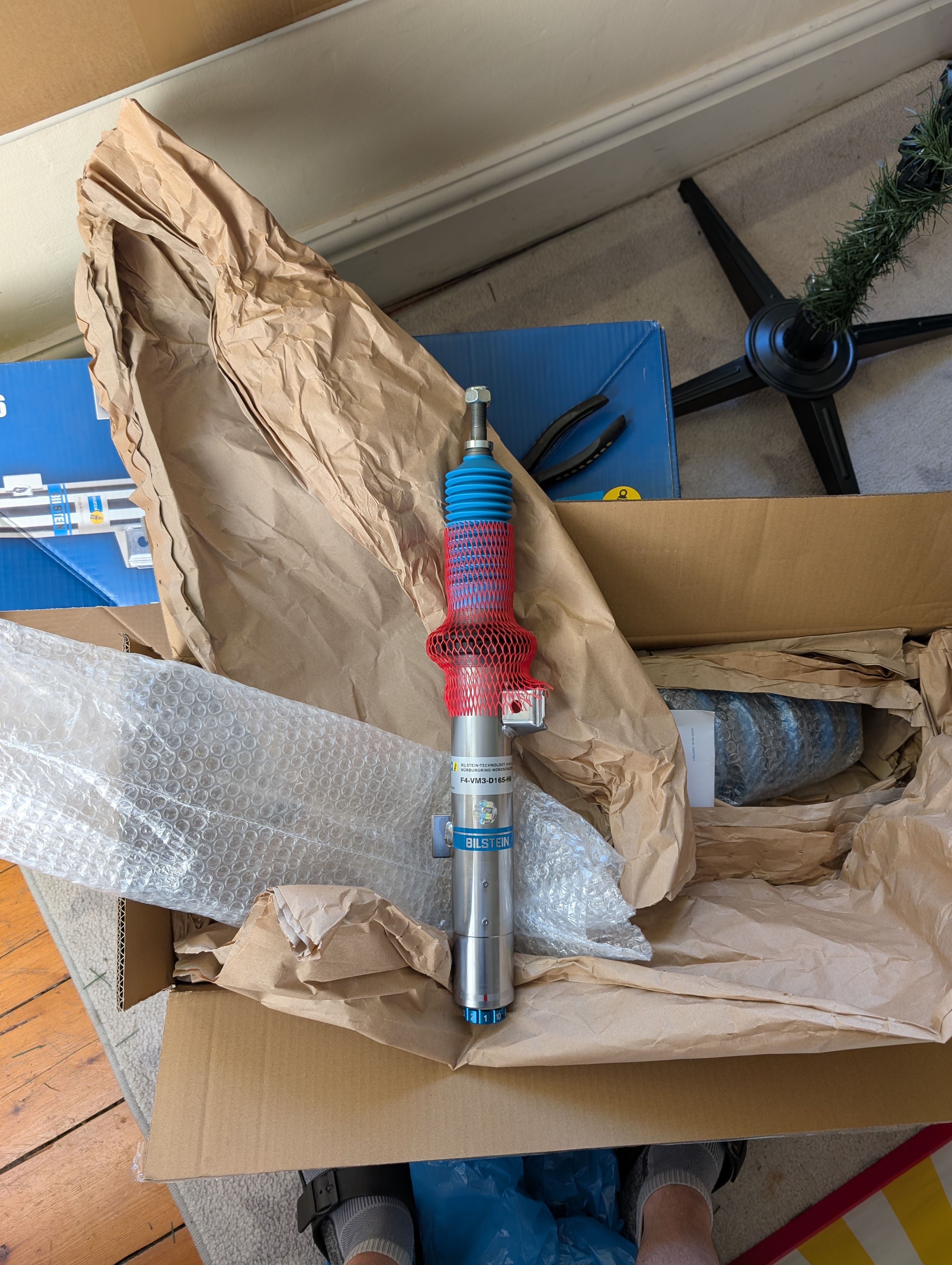 Appreciate all the problem solving. Hard to explain without pics. Either way, I've bitten the bullet, employed the manliest of man maths and purchased a full set of Bilstein B16s. I'll fit the front right, get the wheel back on with a new tyres, and then move it and do the other corners on the flat.