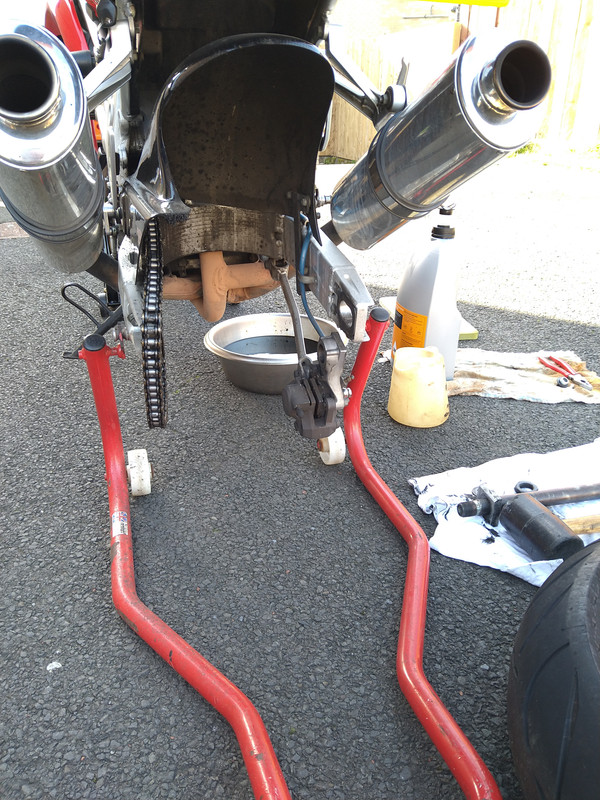 The weather was good yesterday, so sorted the bike out for storage - oil/filter change, chain cleaned, deep clean of the bike, oil cables and cover in ACF50 etc.