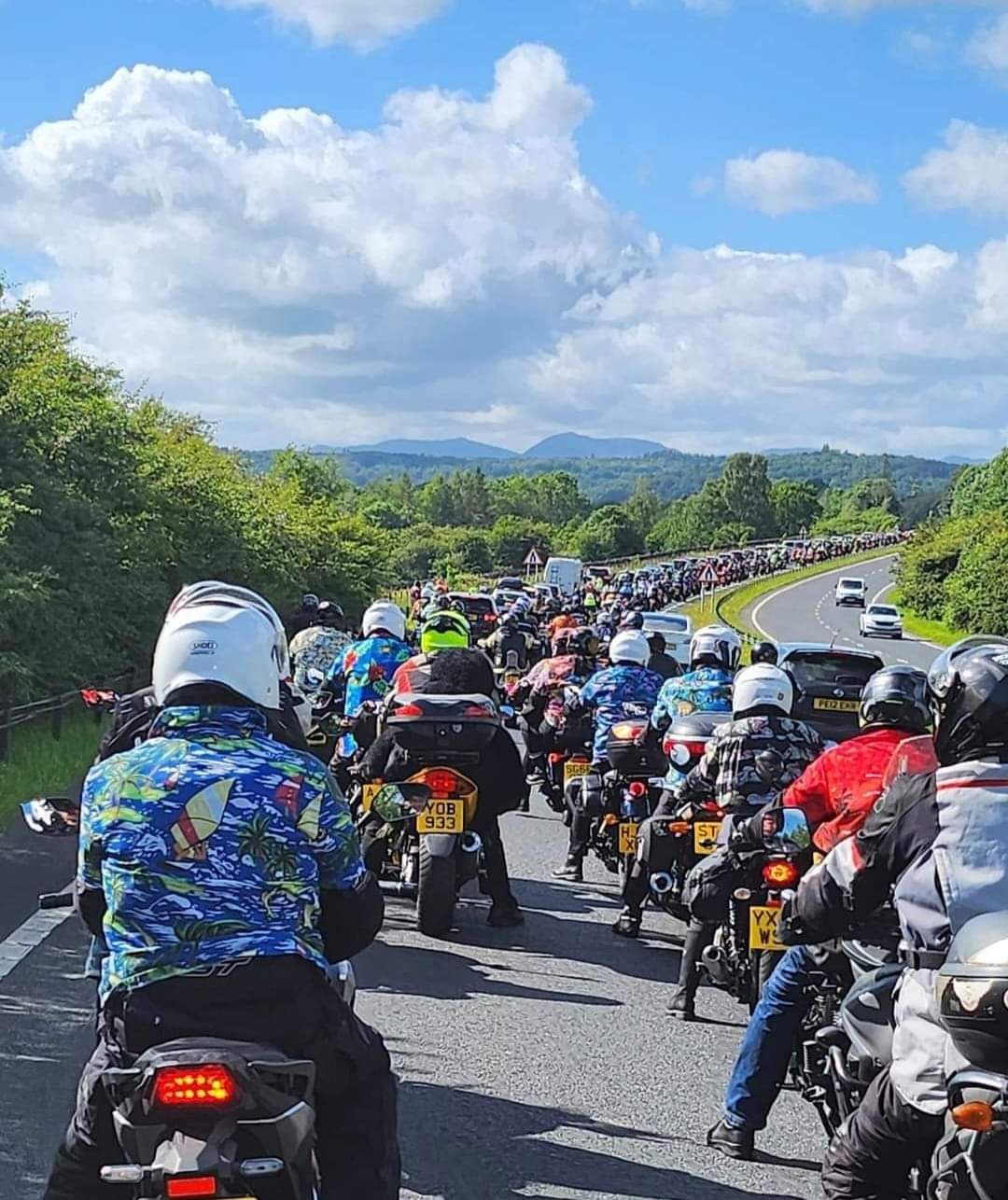 What a day! So well behaved, so unchaotic, a fantastic, warm welcome from the people of Cumbria, a great gig at the rugby ground. The police and marshals did the best job of keeping us moving and safe. Cumbria police said an extra 20000 people stayed in town and partied and there was not a single arrest! I rode up from the Birmingham RV and there were people on EVERY SINGLE BRIDGE, waving and cheering. I don't think I've ever been on a mass ride with so few egos on display - even RTTW.. Hardly anyone bouncing off the rev limiter, very few stupid overtakes on the A590 from the M6 to Barrow. It was just a beautiful celebration of motorcycling and a lovely fella. I smiled (and cried) for mile after mile after mile. And the sun shone over Barrow as we partied into the night. Local people opened their homes and gardens for us to crash in and everyone was smiling. f