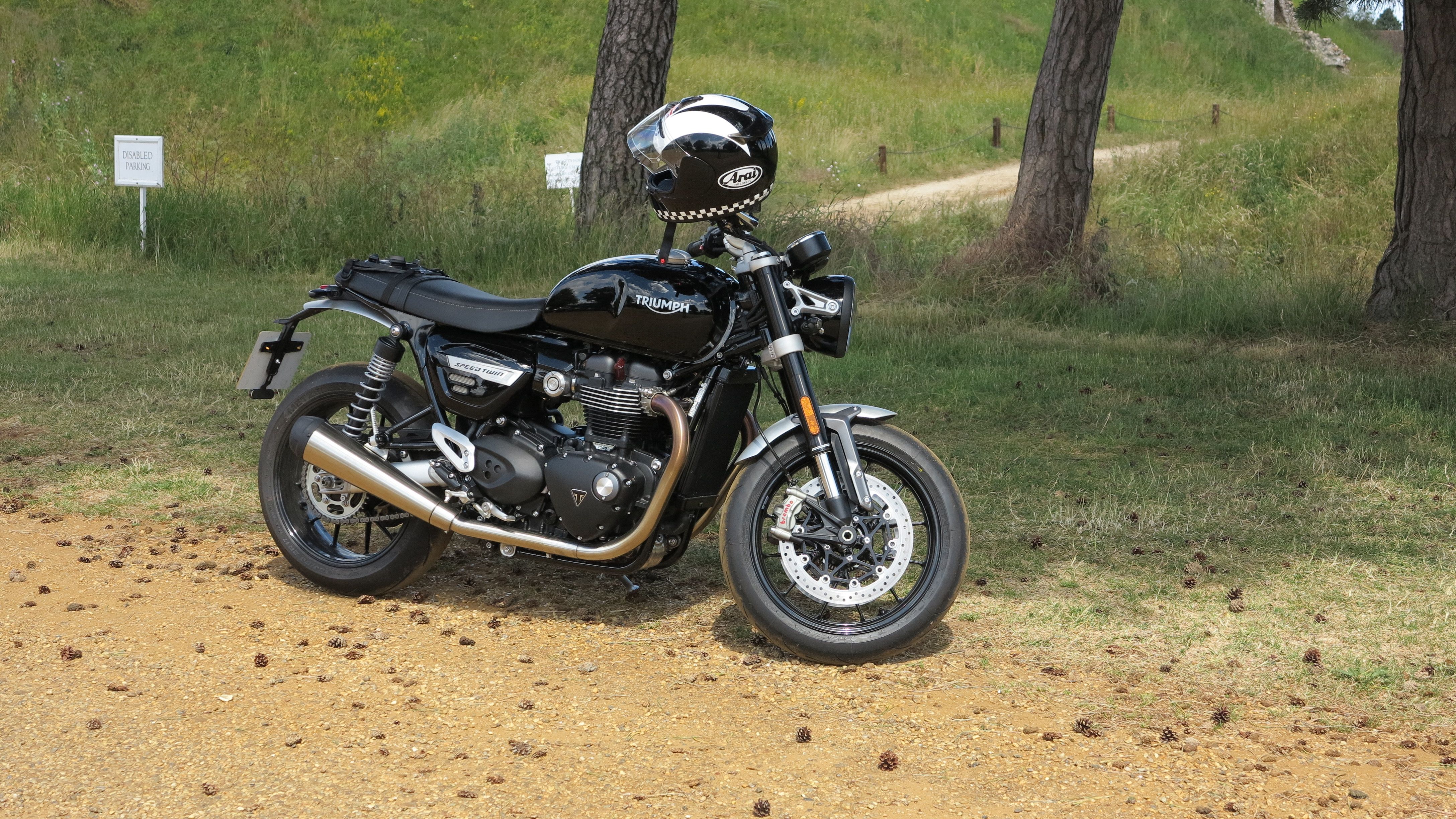 Although I have a couple of newer helmets, my favourite remains my Arai Phil Read replica which I’ve had for about 12 years. Arai quality means that it’s still in great nick and is still really comfortable. It also happens to perfectly suit my Speed Twin.