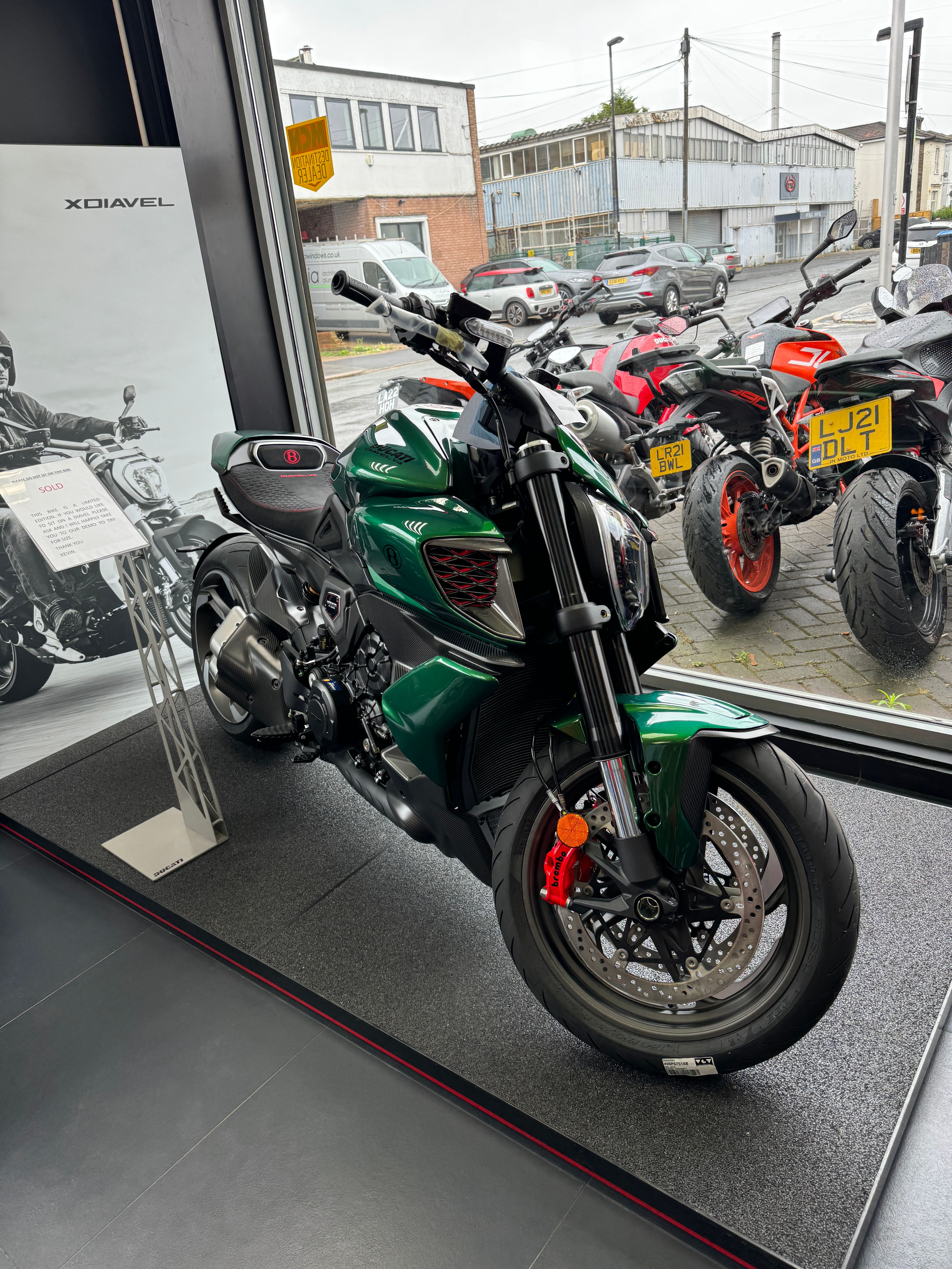 I did the Ducati factory tour today and there were two of these in the final quality control shipping area. Looked stunning in the green amongst the sea of red. Unfortunately no photographs permitted. The guide said there are about 50 reserved for Bentley owners who can have them painted to match their cars.