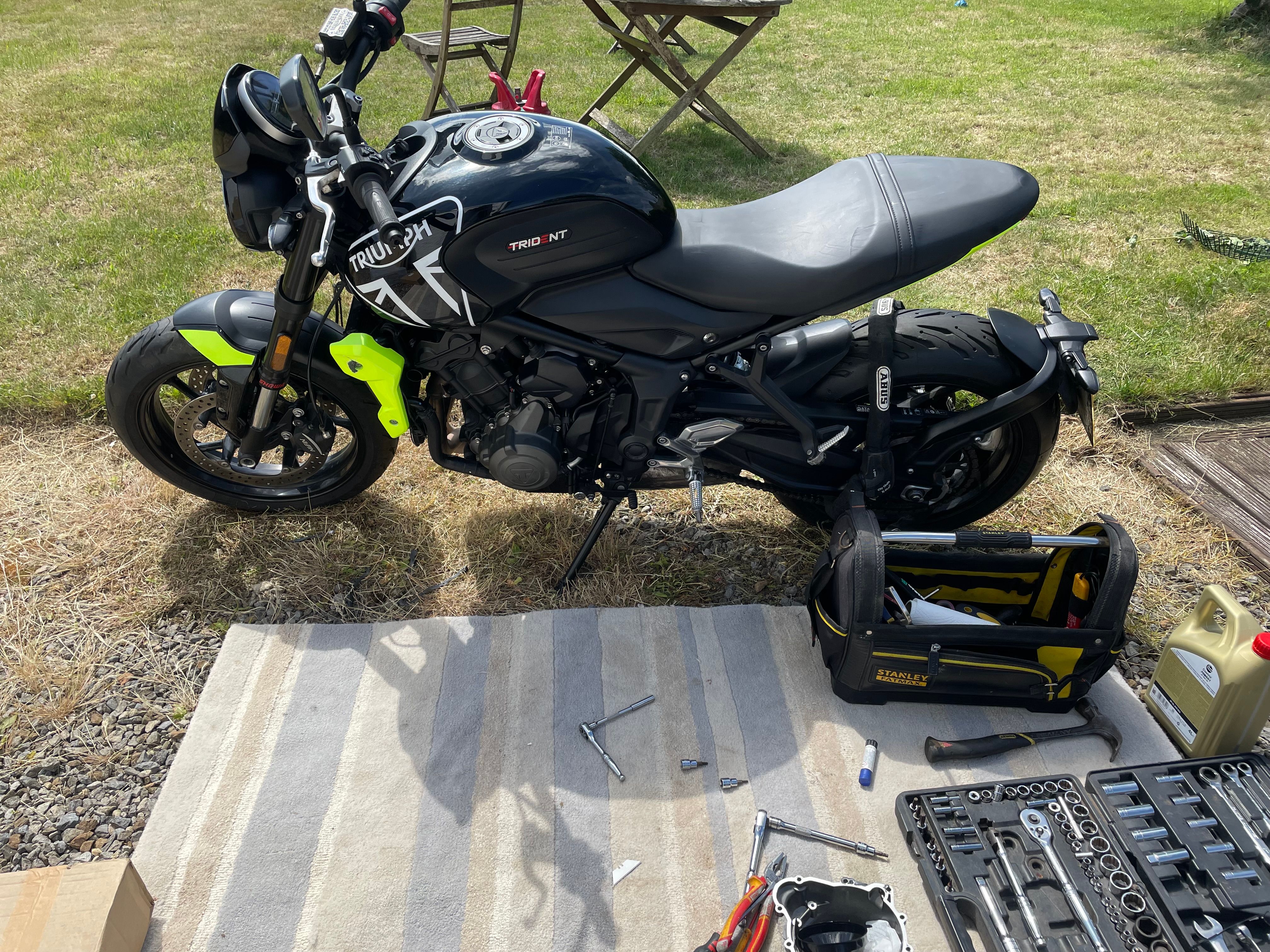 I found a cheap genuine alternator cover on eBay and fitted it yesterday, filled it with oil and it runs and sounds great. I can see why bikes are cat N when you consider the cost of parts and labour, and in this case the sump is scuffed and it isn’t cheap to replace (I won’t bother until I find one on eBay), and they probably allowed for damage to the stator. The radiator fairing is also scuffed but I hate the luminous yellow anyway and plan on repairing it and changing the colour. I’m glad it doesn’t need much more work as I’m currently staying at my brother’s empty house (we sold and are waiting to buy again) and it doesn’t have a garage, which is a pain!